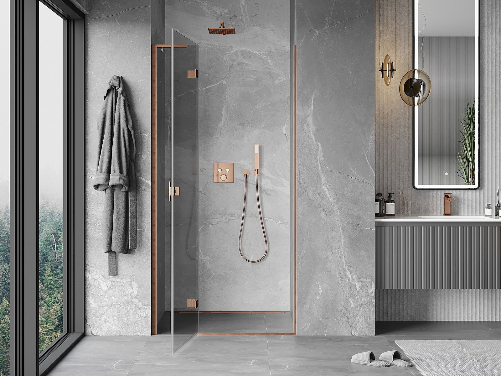 Mexen Mist-H L uși de duș rabatabile stânga 100 cm, transparent, cupru periat - 8A5L-100-000-65-00-L