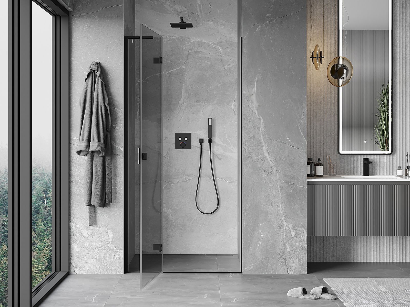 Mânerul practic și confortabil este realizat din metal durabil și rezistent. Forma modernă, combinată cu un finisaj asortat cu culoarea profilelor, conferă un aspect modern și elegant întregului, subliniind estetica fiecărei băi.