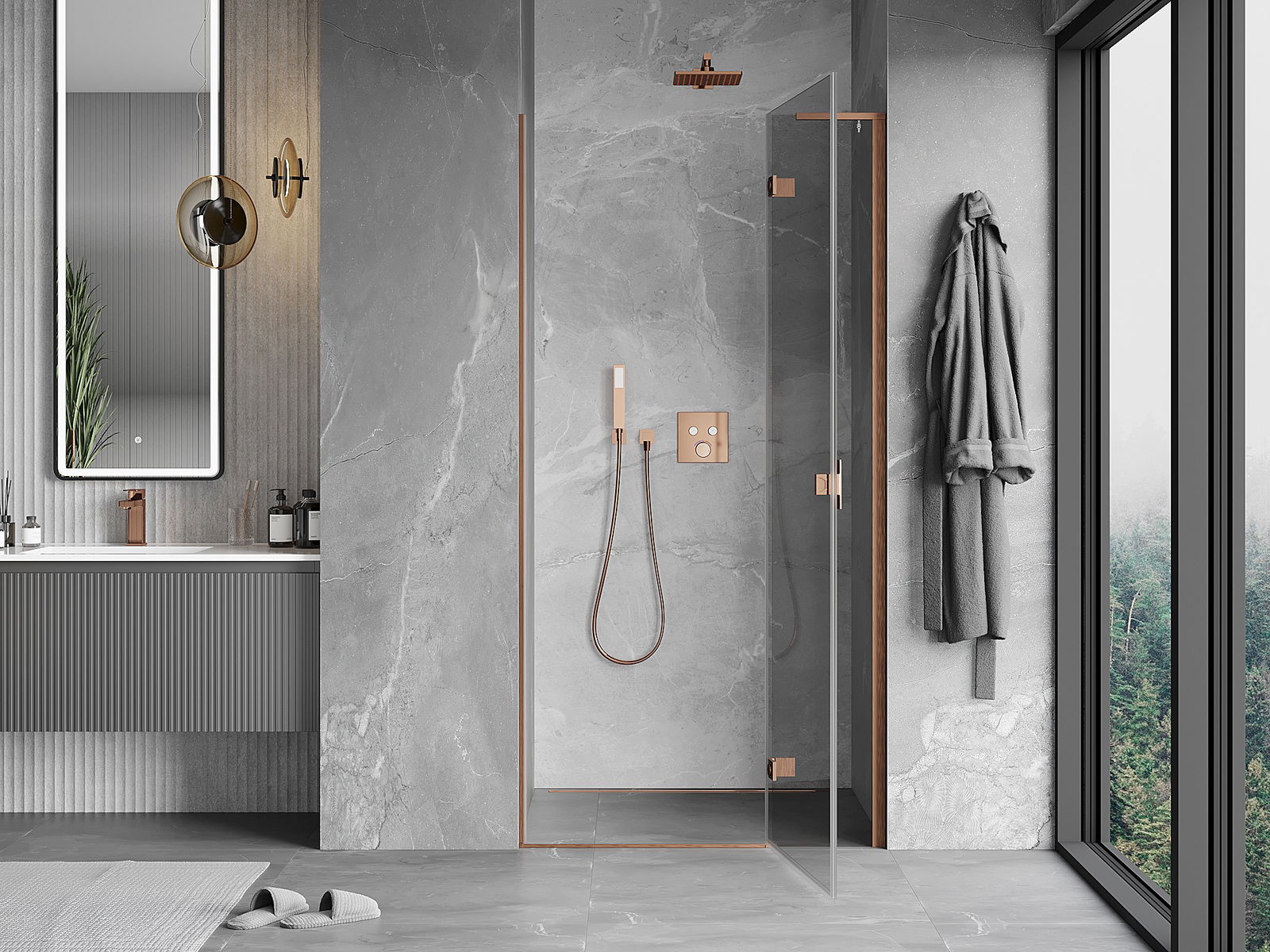 Mânerul practic și confortabil este realizat din metal durabil și rezistent. Forma modernă, combinată cu un finisaj asortat cu culoarea profilelor, conferă un aspect modern și elegant întregului, subliniind estetica fiecărei băi.