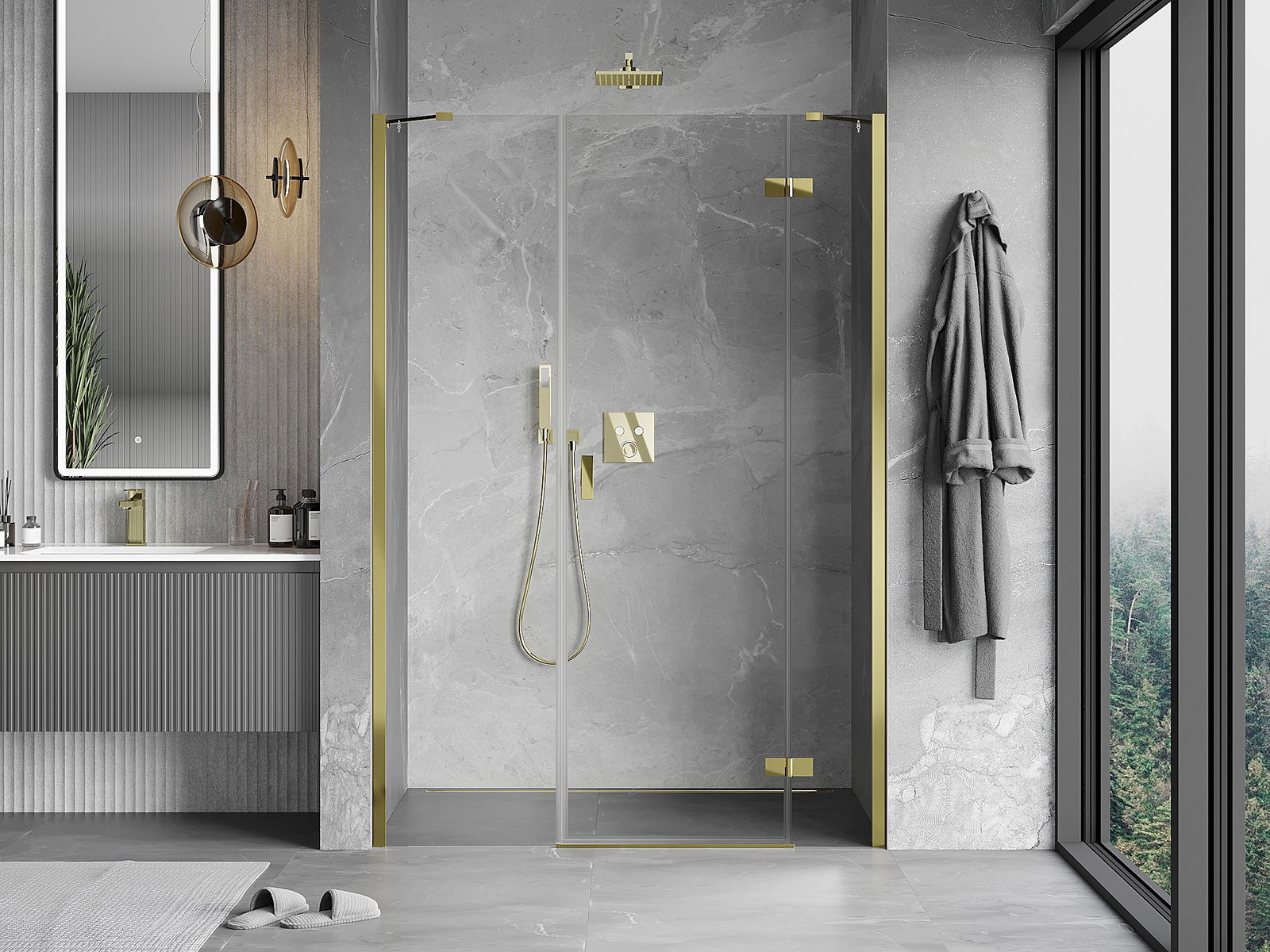 Mânerul practic și confortabil este realizat din metal durabil și rezistent. Forma modernă, combinată cu un finisaj asortat cu culoarea profilelor, conferă un aspect modern și elegant întregului, subliniind estetica fiecărei băi.