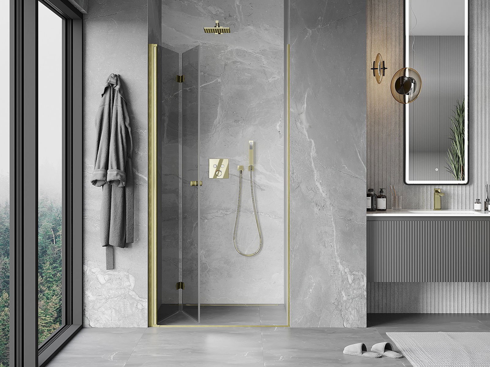 Mexen Mist-F ușă de duș pliabilă stânga 80 cm, transparentă, aurie periată - 8A6-080-000-55-00-L