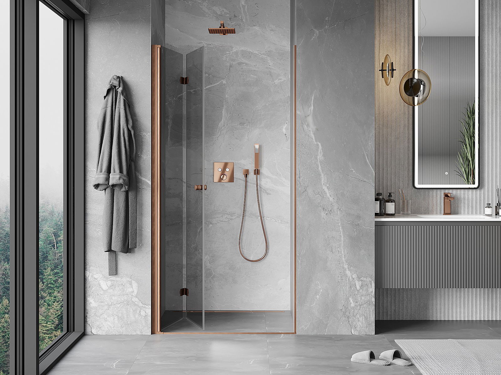 Mexen Mist-F ușă de duș pliabilă stânga 95 cm, transparent, cupru periat - 8A6-095-000-65-00-L