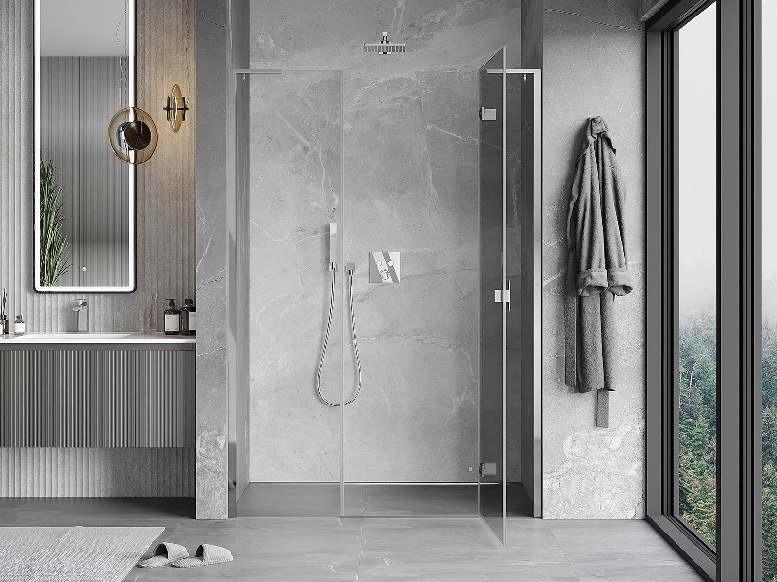 Mânerul practic și confortabil este realizat din metal durabil și rezistent. Forma modernă, combinată cu un finisaj asortat cu culoarea profilelor, conferă un aspect modern și elegant întregului, subliniind estetica fiecărei băi.