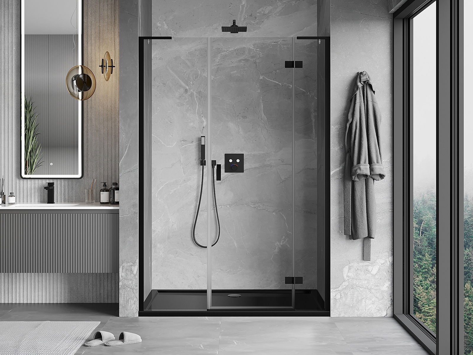 Mânerul practic și confortabil este realizat din metal durabil și rezistent. Forma modernă, combinată cu un finisaj asortat cu culoarea profilelor, conferă un aspect modern și elegant întregului, subliniind estetica fiecărei băi.