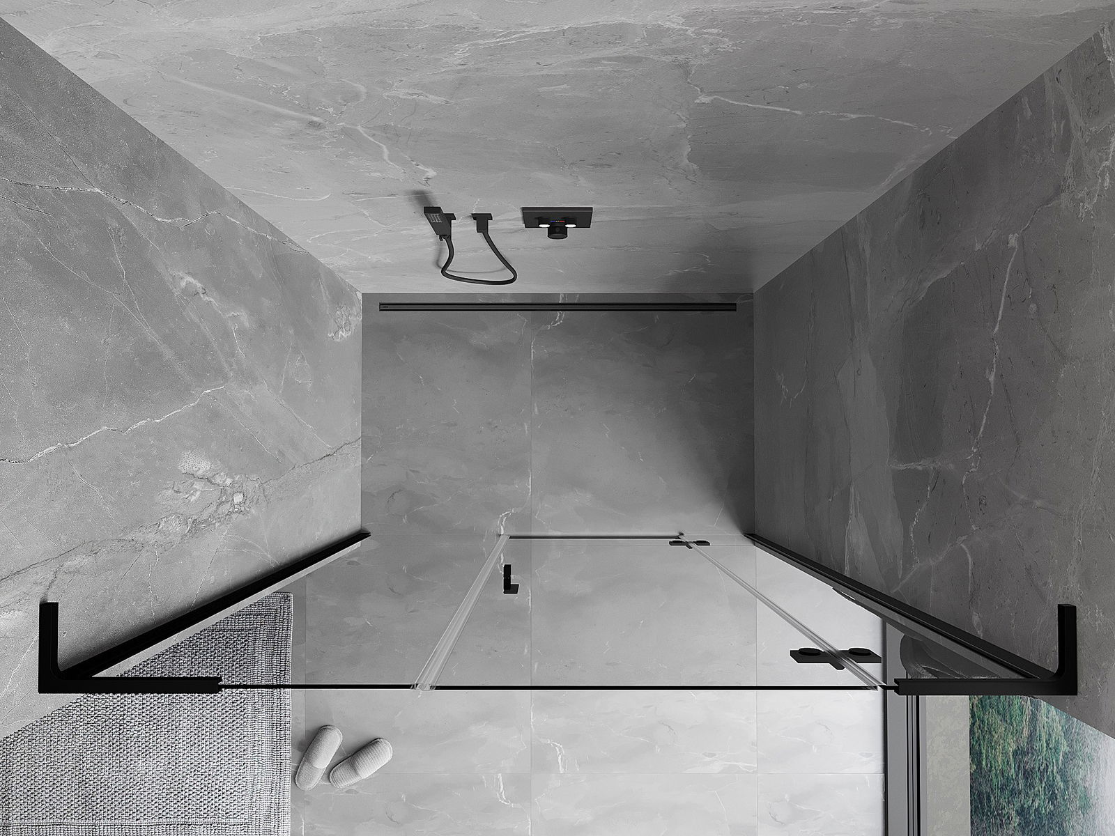 Produsul poate fi montat fie pe cabina de duș, fie direct pe podea, în funcție de nevoi. Metoda de montare universală permite adaptarea produsului la diferite tipuri de băi și configurații de spațiu.