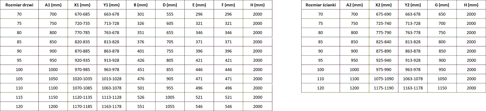 Dimensiune: 120x90 cm (uși dreapta 120 cm, perete 90 cm)