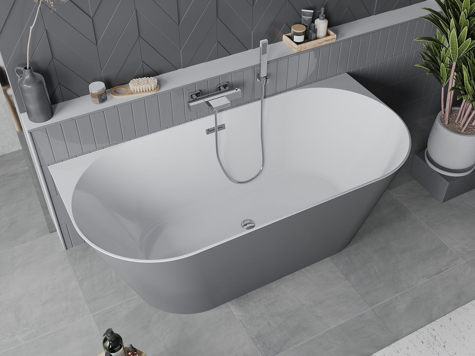 Este un material modern care combină un aspect elegant cu o durabilitate ridicată. Este rezistent la deteriorări mecanice, ușor de curățat și plăcut la atingere. Forma transparentă și marginea subțire a căzii îi conferă lejeritate și un caracter unic, creând un accent spectaculos în amenajarea băii.