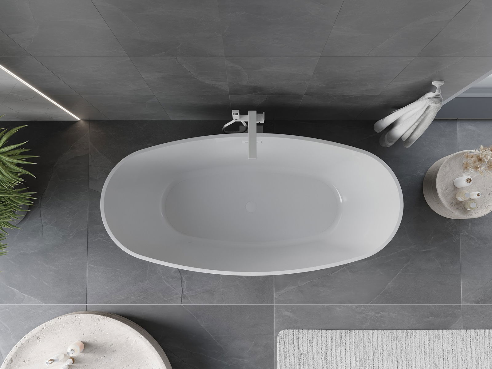 Este un material modern care combină un aspect elegant cu o durabilitate ridicată. Este rezistent la deteriorări mecanice, ușor de curățat și plăcut la atingere. Forma transparentă și marginea subțire a căzii îi conferă lejeritate și un caracter unic, creând un accent spectaculos în amenajarea băii.