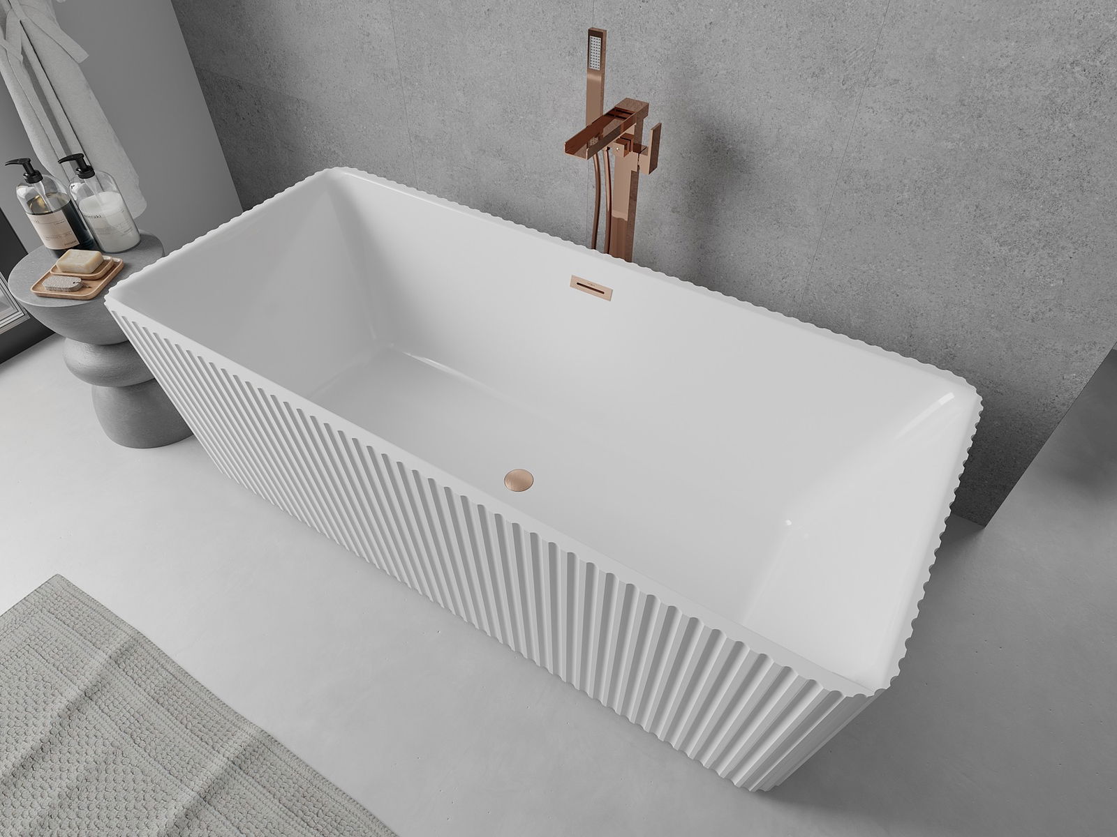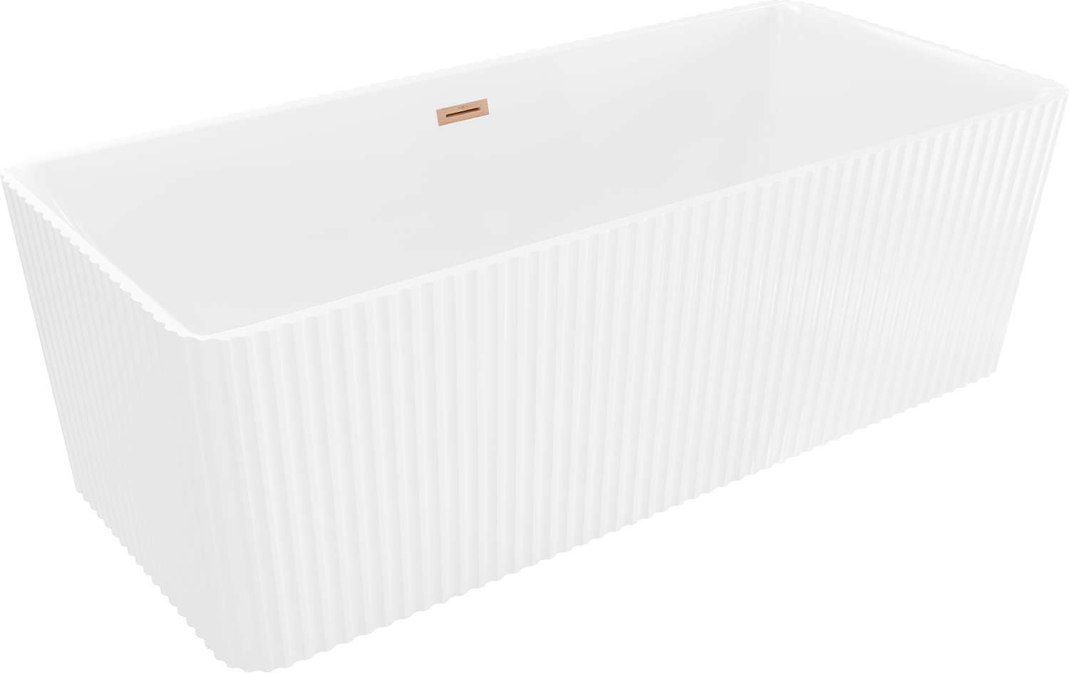 Mexen Nila cadă de baie independentă canelată 170 x 75 cm, albă, preaplin cupru periat - 52841708000-65