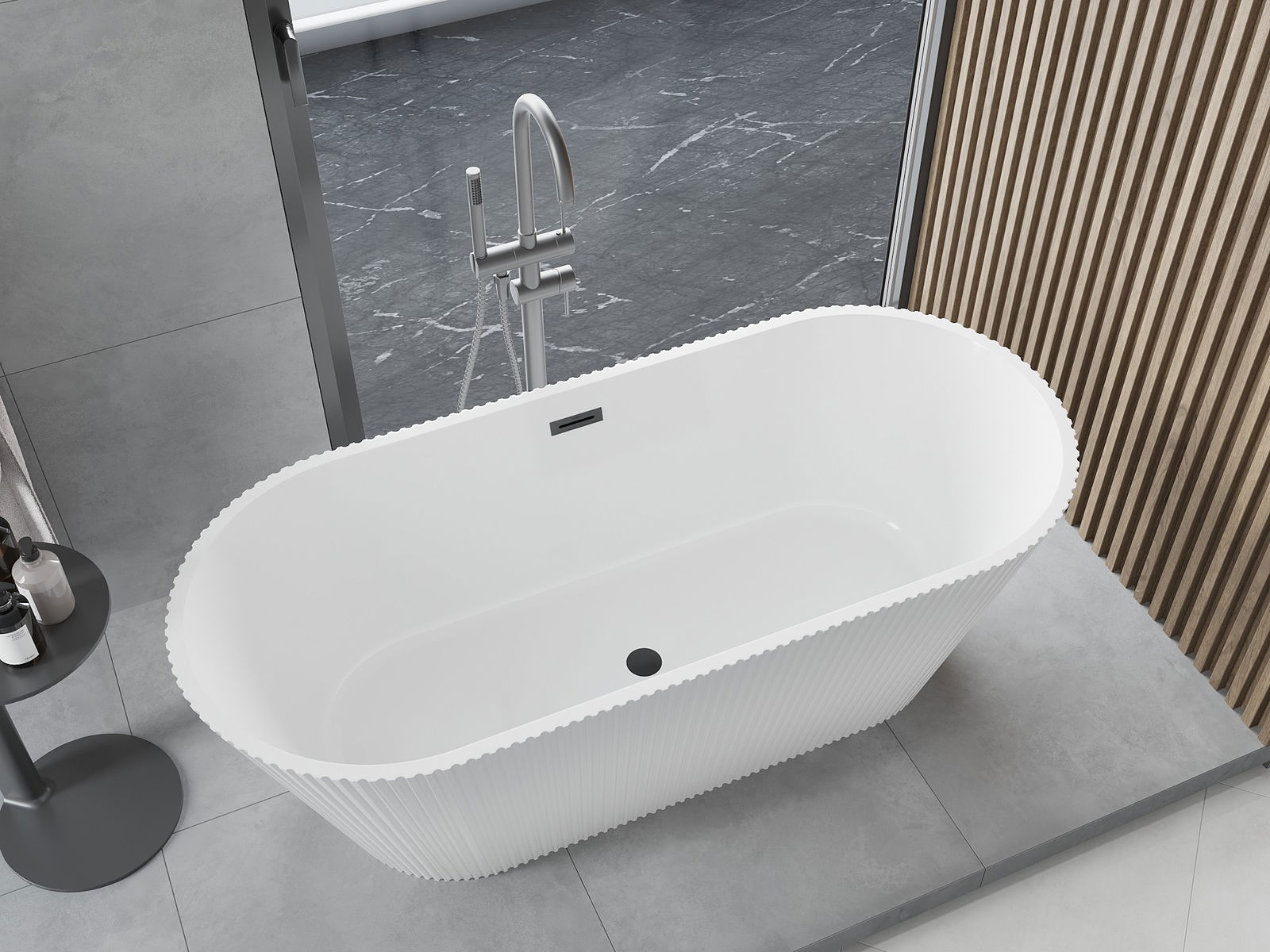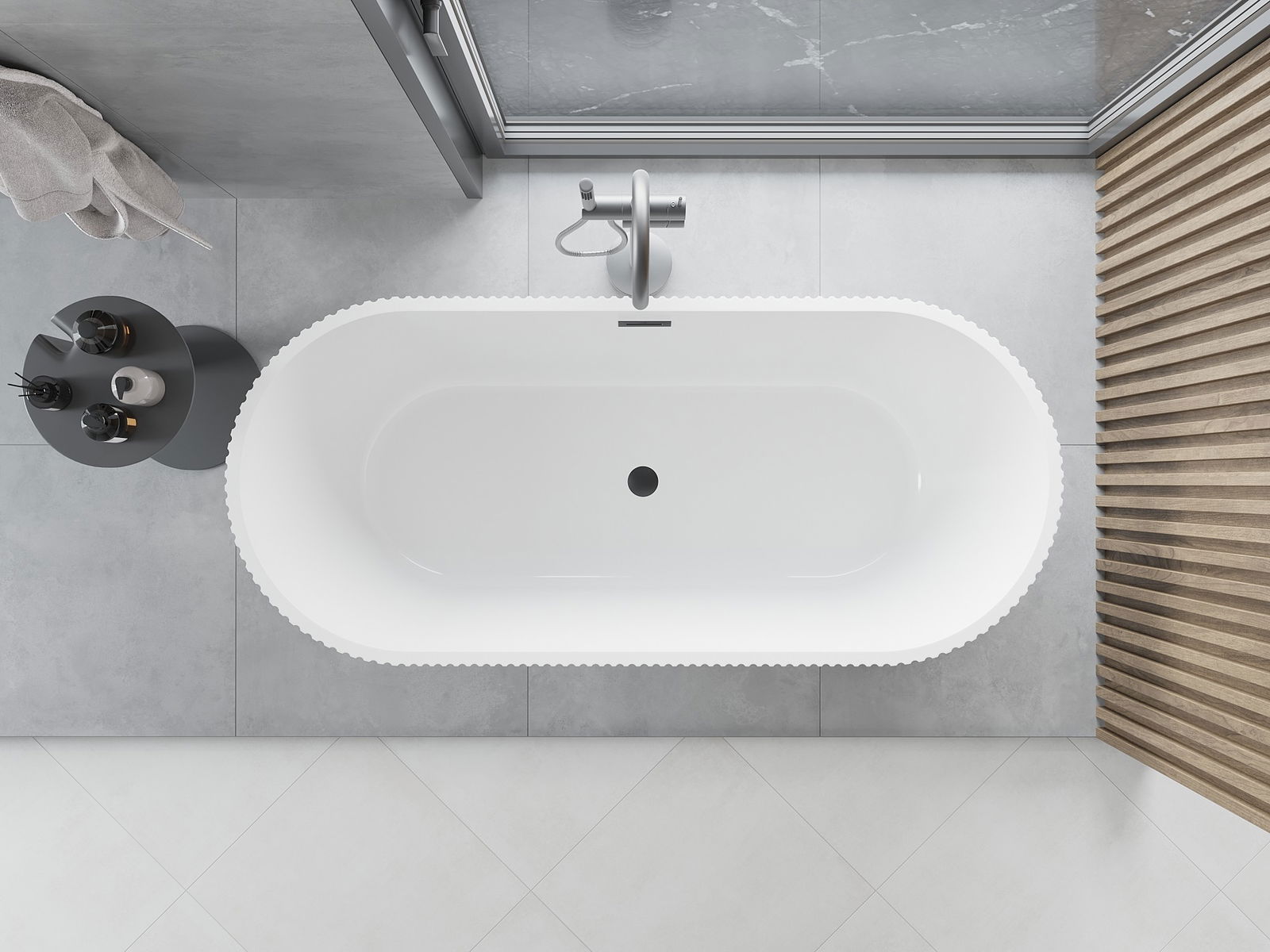 Este un material modern care combină un aspect elegant cu o durabilitate ridicată. Este rezistent la deteriorări mecanice, ușor de curățat și plăcut la atingere. Forma transparentă și marginea subțire a căzii îi conferă lejeritate și un caracter unic, creând un accent spectaculos în amenajarea băii.