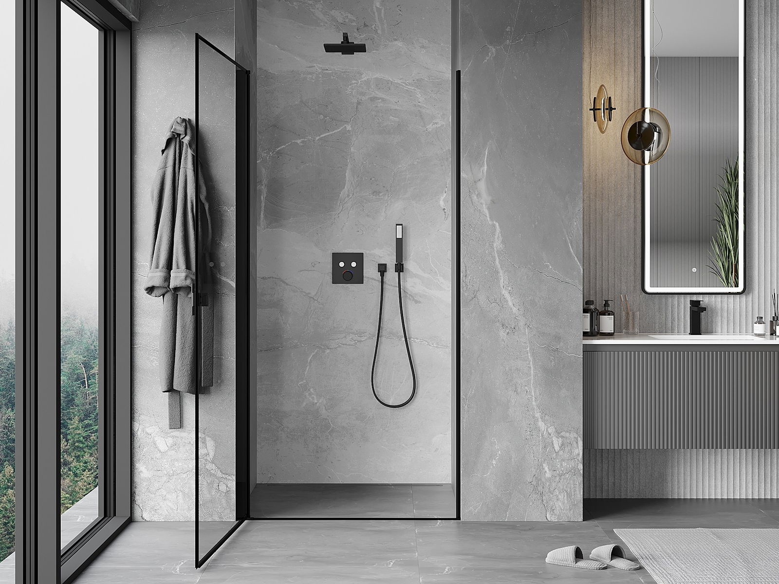Mexen Mist-B ușă de duș batantă stânga 90 cm, ramă neagră, negru - 8A2-090-000-70-70-L