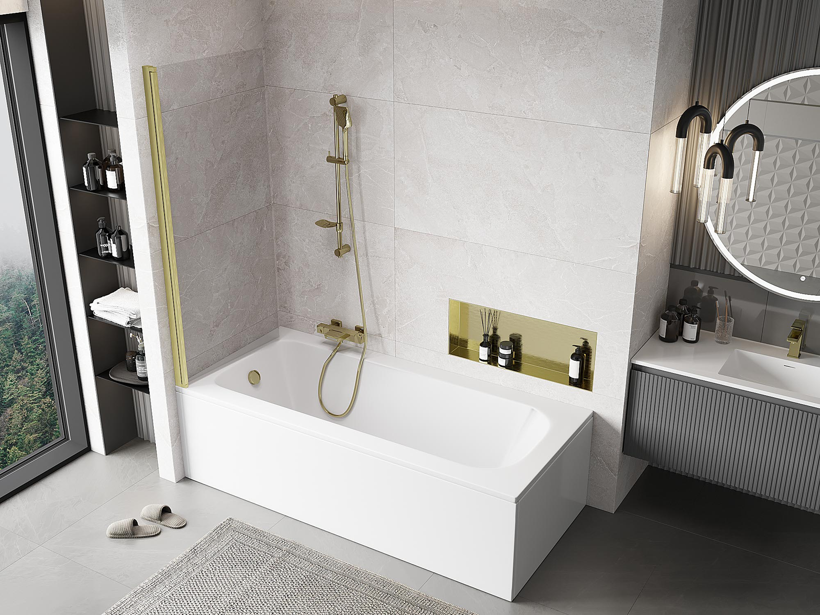 Mexen Mist paravan de cadă cu 1 panou 70 x 150 cm, transparent, auriu periat - 8A9-070-001-55-00