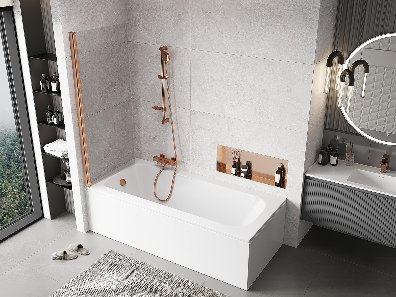 Mexen Mist paravan de baie 1-canat 70 x 150 cm, transparent, cupru periat - 8A9-070-001-65-00