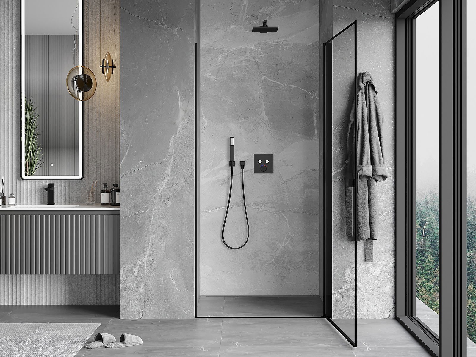 Mânerul practic și confortabil este realizat din metal durabil și rezistent. Forma modernă, combinată cu un finisaj asortat cu culoarea profilelor, conferă un aspect modern și elegant întregului, subliniind estetica fiecărei băi.