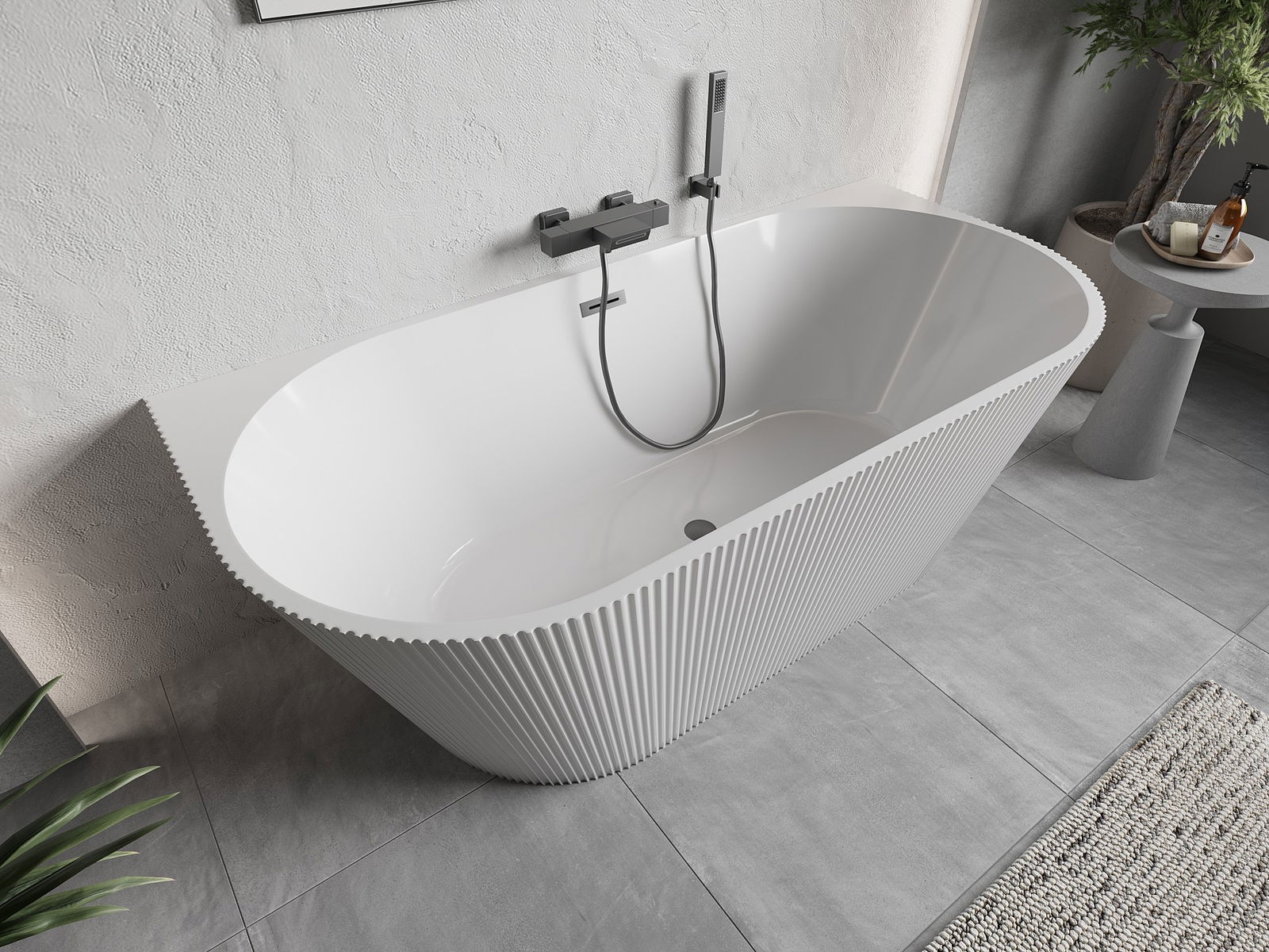 Este un material modern care combină un aspect elegant cu o durabilitate ridicată. Este rezistent la deteriorări mecanice, ușor de curățat și plăcut la atingere. Forma transparentă și marginea subțire a căzii îi conferă lejeritate și un caracter unic, creând un accent spectaculos în amenajarea băii.
