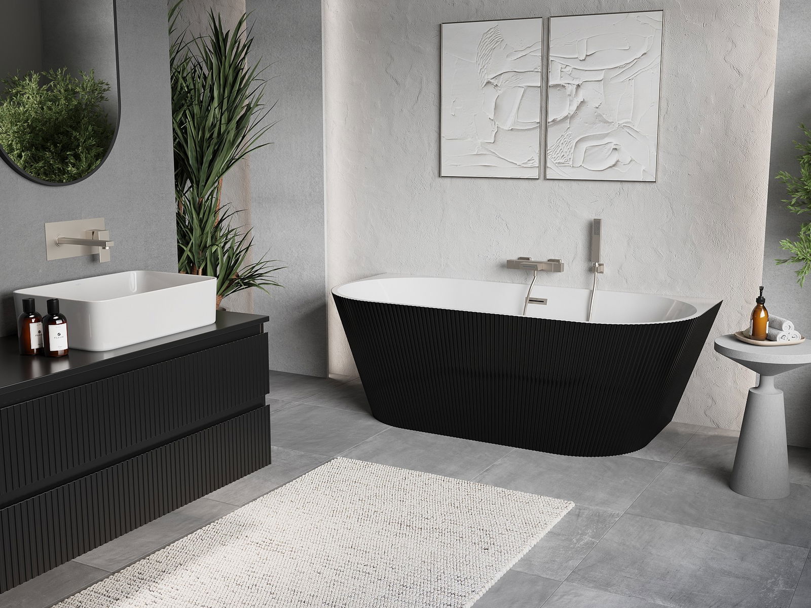 Mexen Oris cadă de baie freestanding paralelă 170 x 80 cm, alb/negru, preaplin nichel periat - 52871708075-97