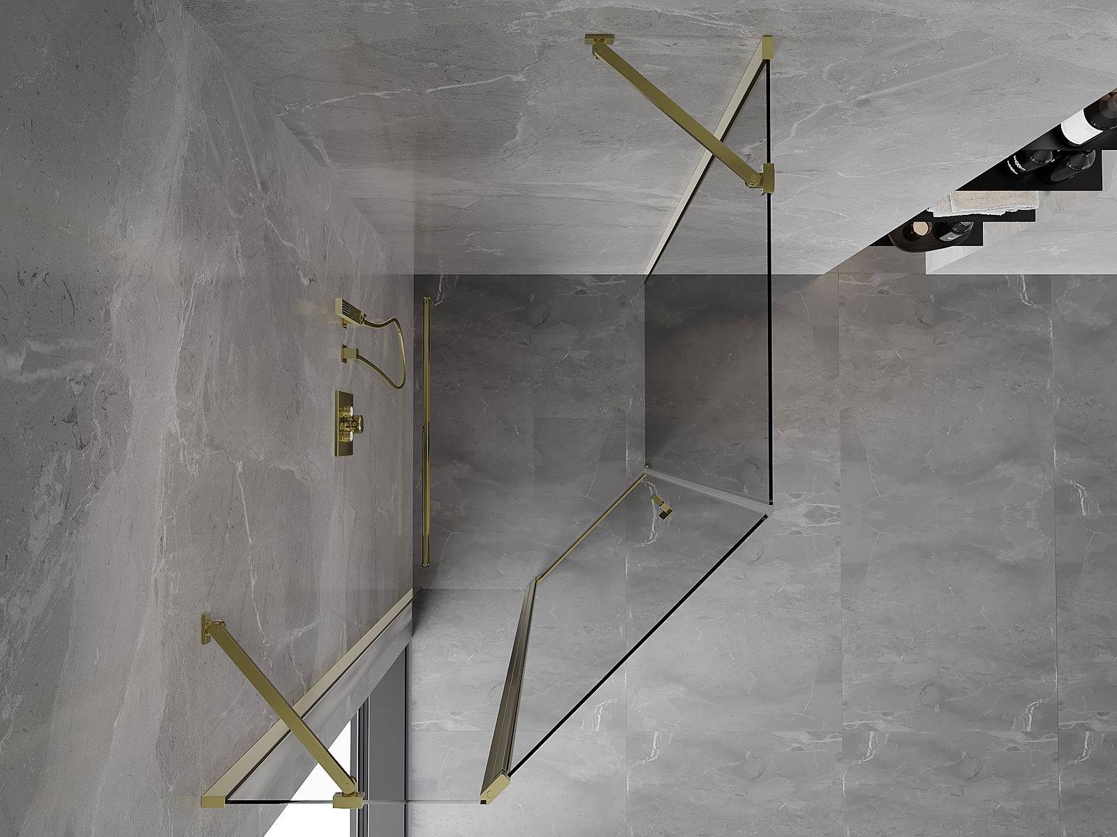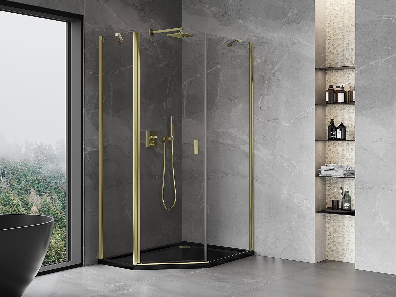 Mexen Mist cabină de duș pentagonală asimetrică batantă 90 x 100 cm, transparentă, aurie - 8A8-090-100-50-00