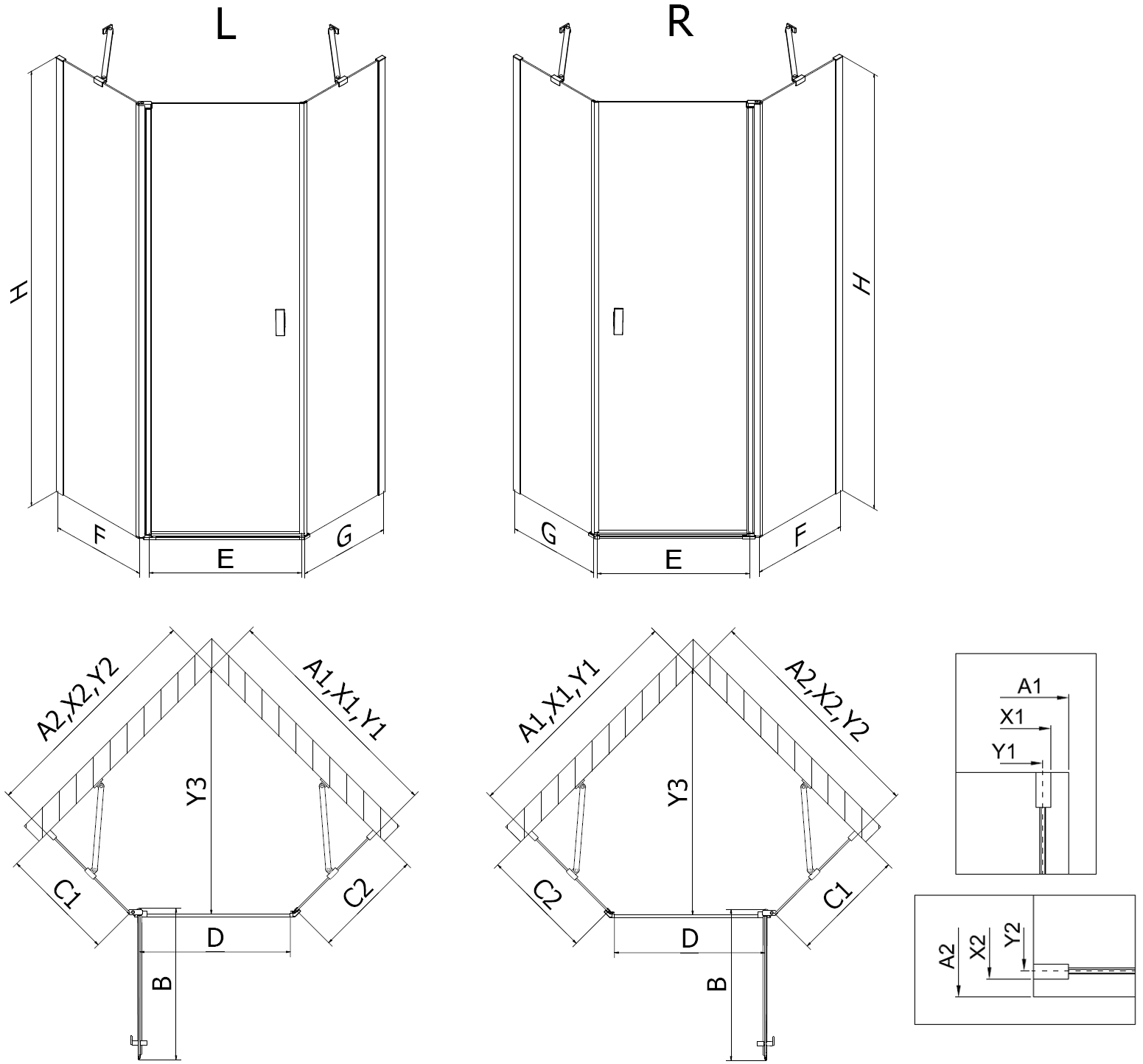 Dimensiune: 90x90 cm (ușă 90 cm, panou 90 cm)