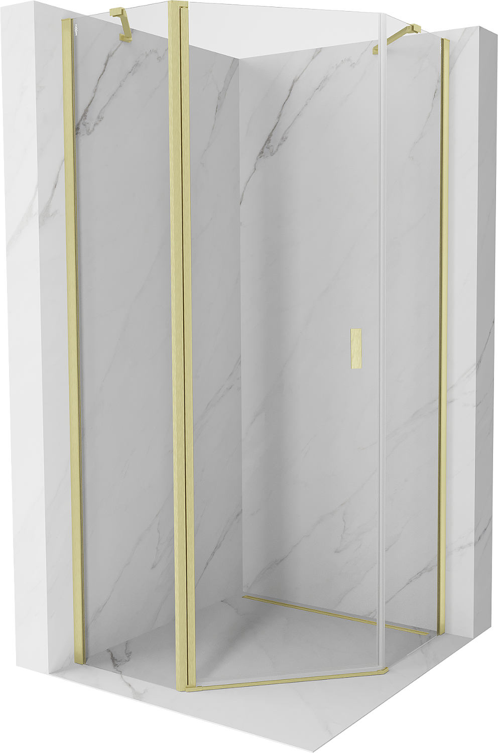 Mexen Mist cabină de duș pentagonală rabatabilă 90 x 90 cm, transparentă, aurie periată - 8A8-090-090-55-00