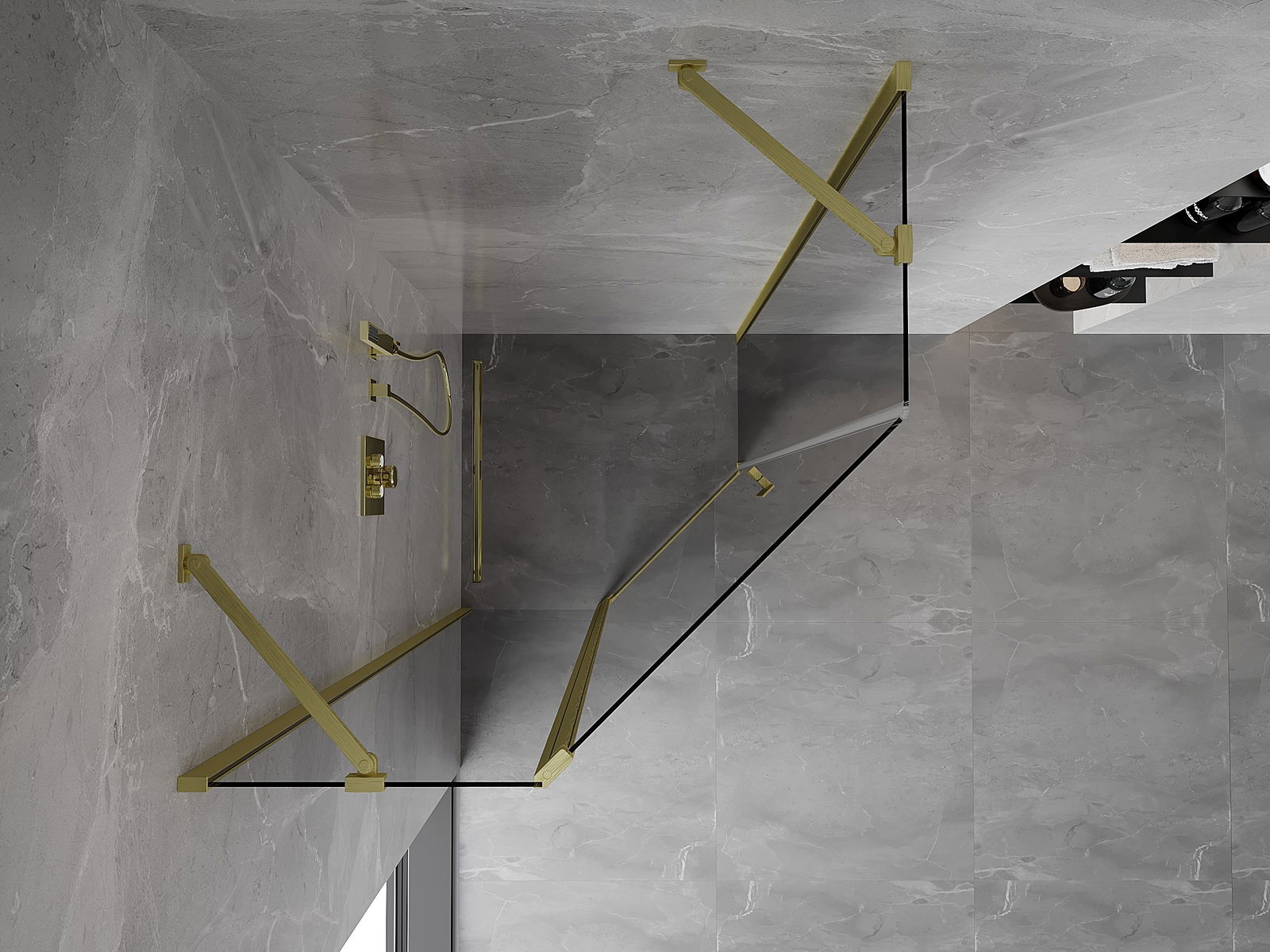 Mexen Mist cabina de duș pentagonală cu ușă batantă 100 x 100 cm, transparentă, aurie mată - 8A8-100-100-55-00