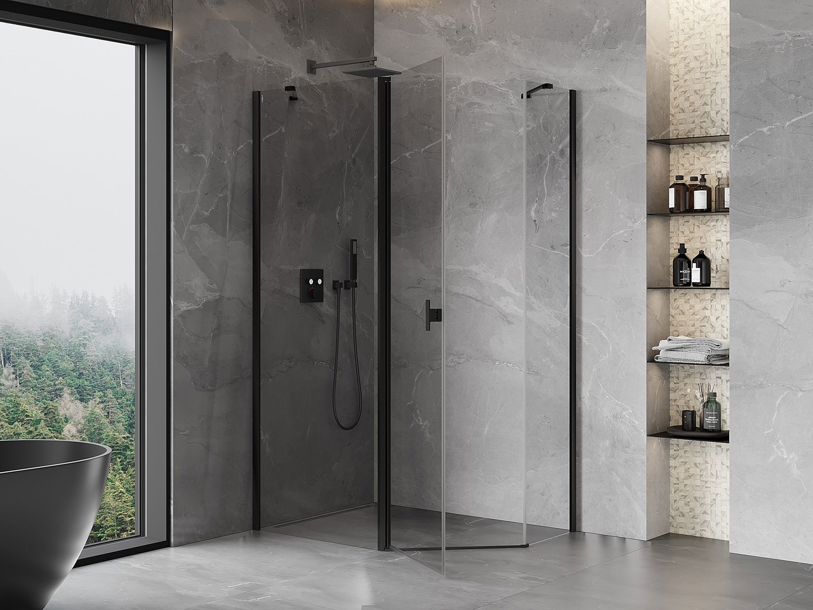 Mexen Mist cabină de duș pentagonală asimetrică, pivotantă, 90 x 80 cm, transparent, neagră - 8A8-090-080-70-00