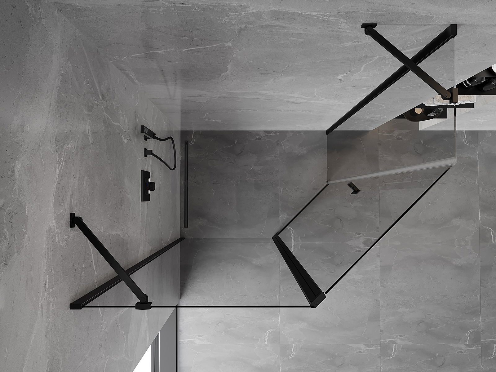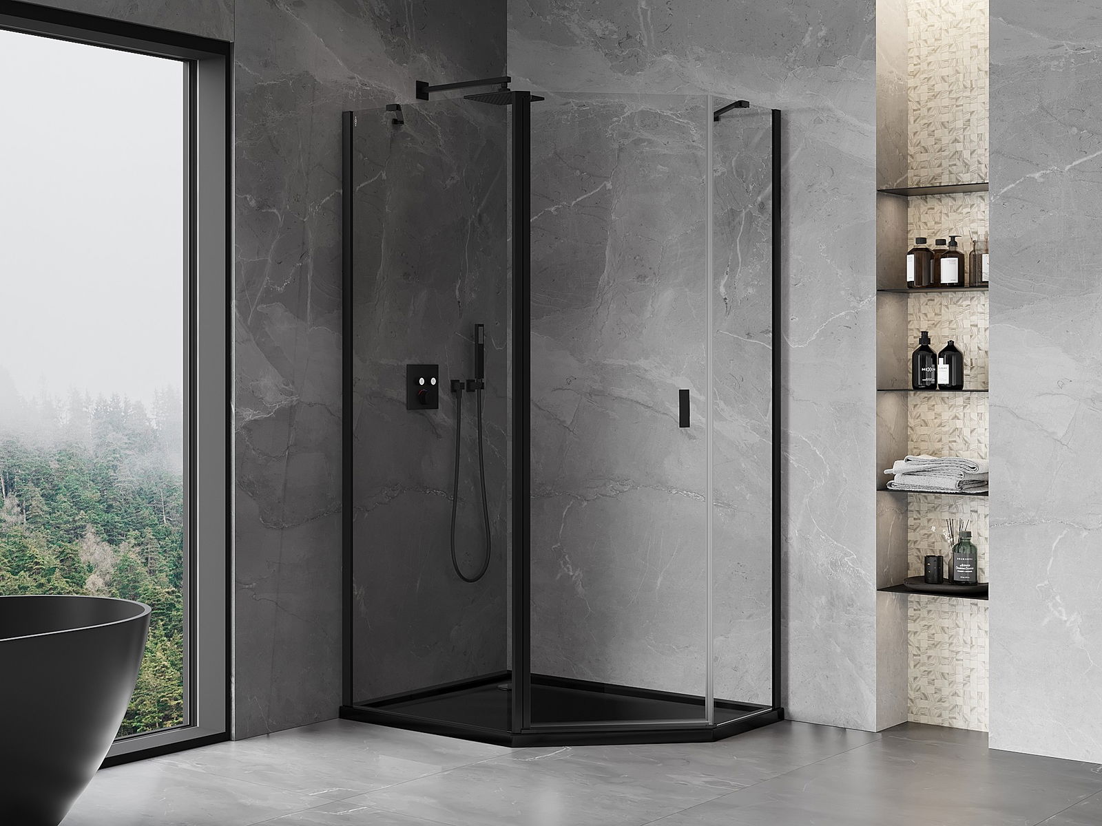 Mexen Mist cabină de duș asimetrică pentagonală cu ușă batantă 100 x 90 cm, transparentă, neagră - 8A8-100-090-70-00