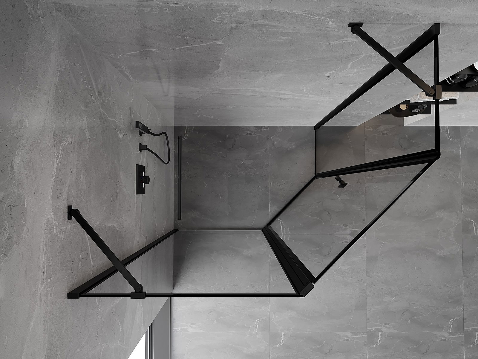 Mexen Mist cabina de duș pentagonală asimetrică cu ușă batantă stânga 100 x 80 cm, cadru negru, negru