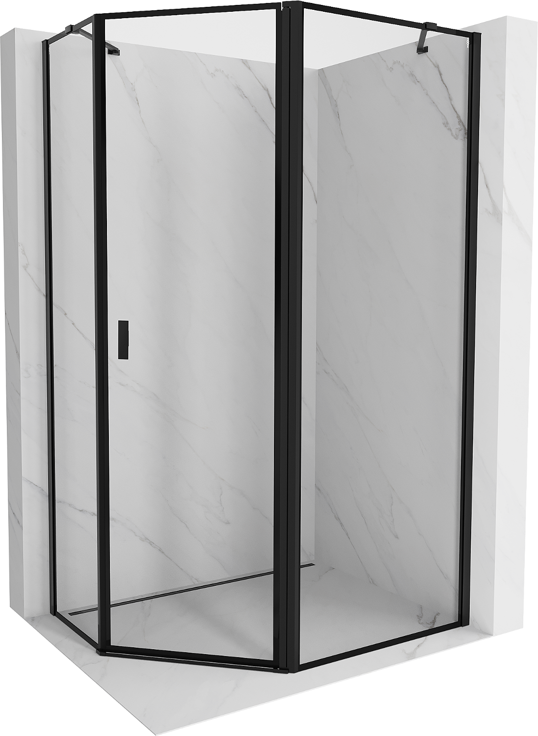 Mexen Mist cabină de duș pentagonală asimetrică dreptunghiulară dreapta 90 x 80 cm, ramă neagră, neagră - 8A8-090-080-70-70-P