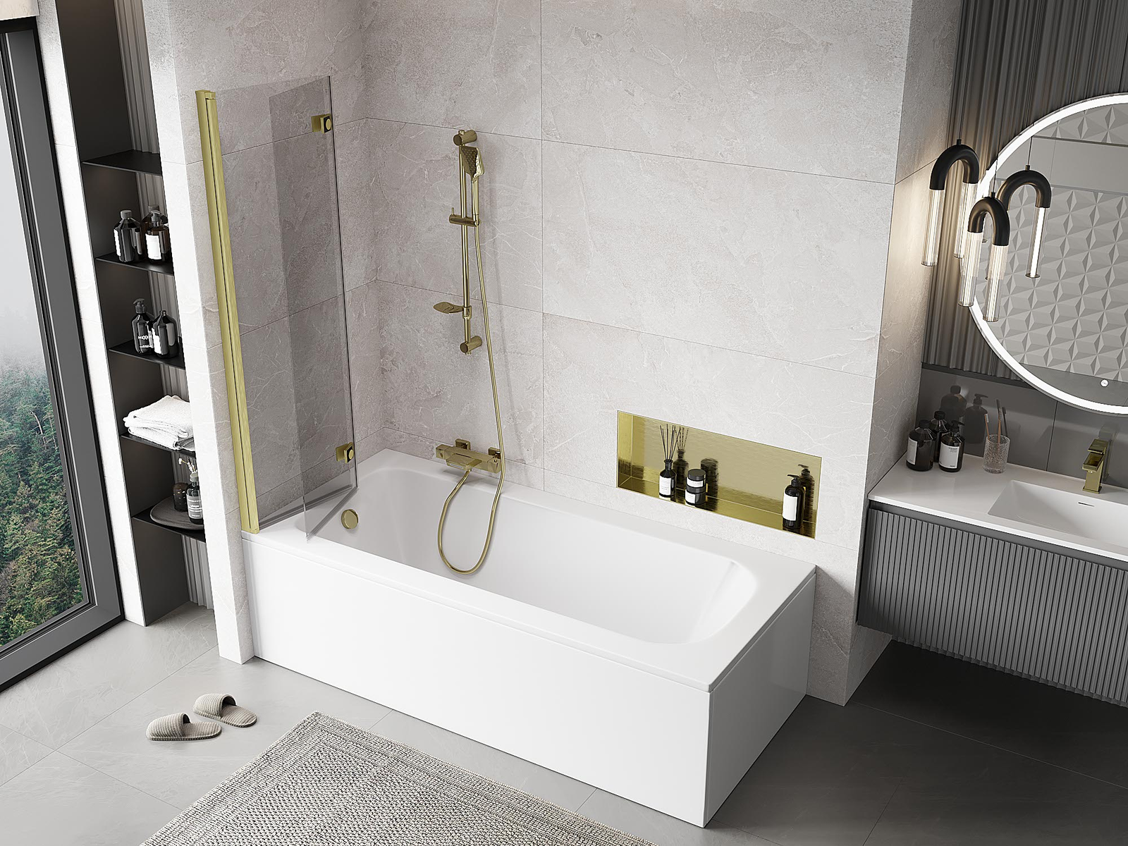 O protecție eficientă împotriva vărsării apei în timpul băii. Paravanul are garnituri care se potrivesc perfect cu suprafața de sticlă și marginea căzii. O soluție funcțională care asigură siguranță și întreținere ușoară a curățeniei.