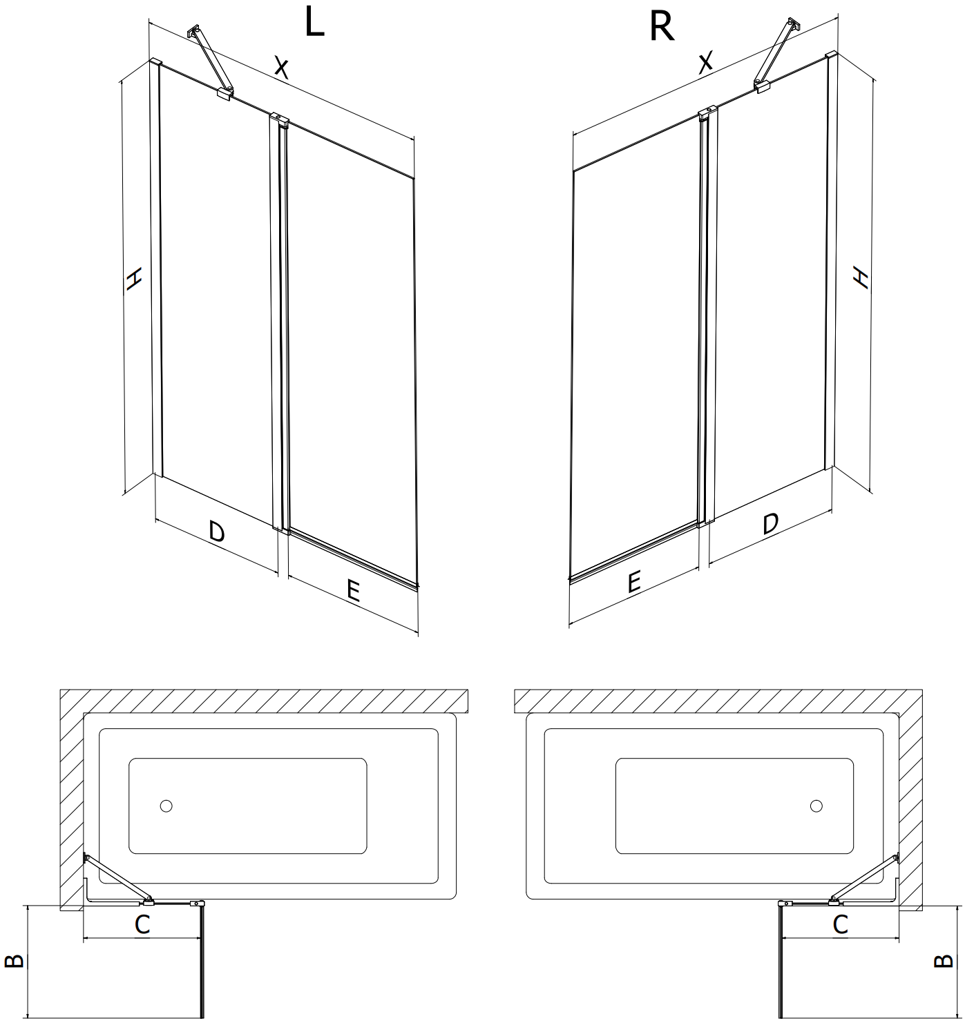 Paravan realizat din două uși cu posibilitatea de pliere. Această soluție permite economisirea mai mult spațiu în baie și permite utilizarea liberă a spațiului rămas atunci când nu folosim zona de baie.