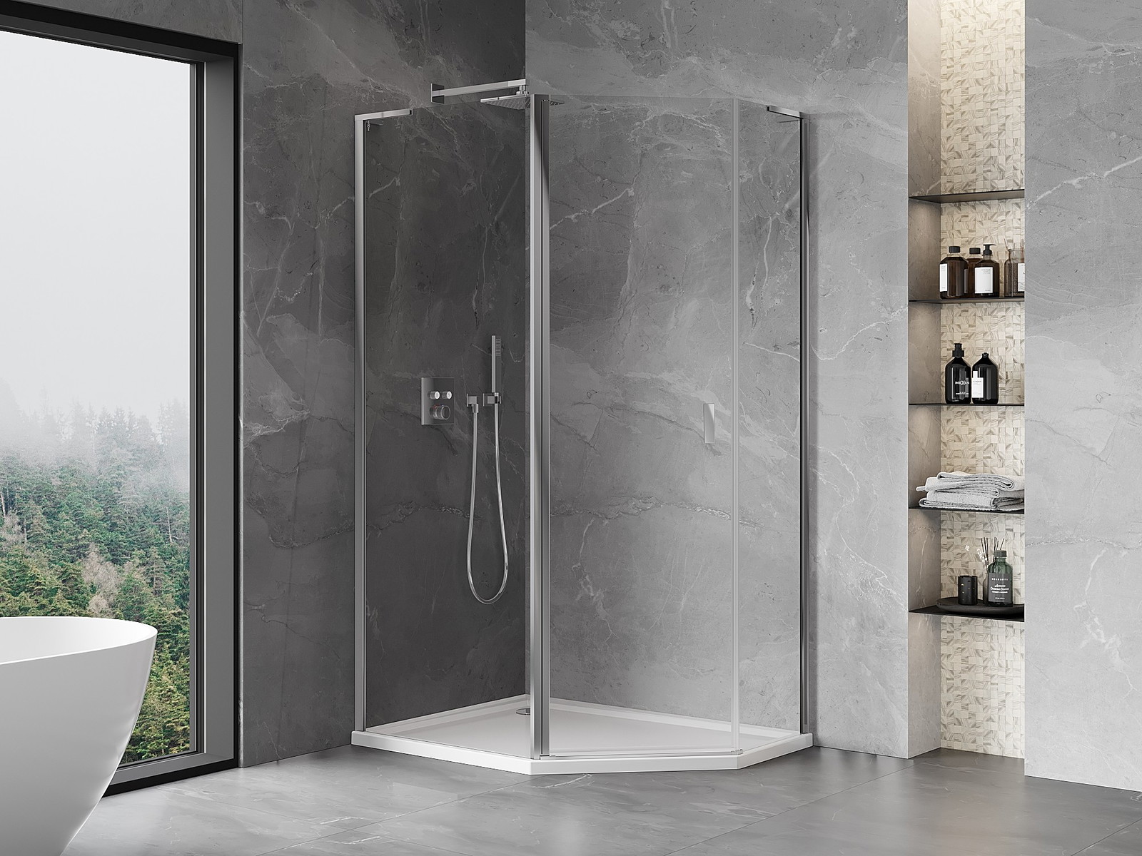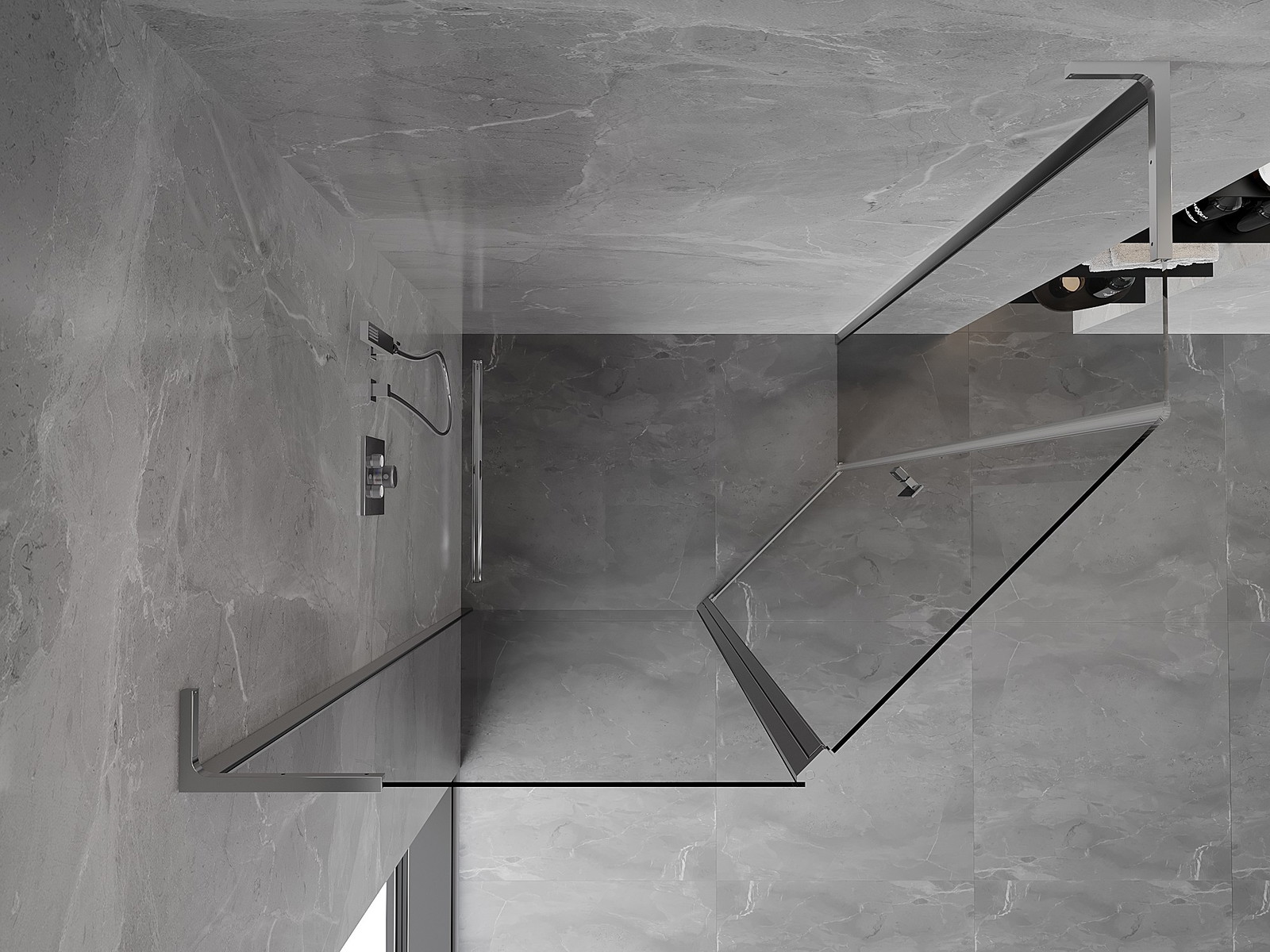 Mexen Mist L cabină de duș pentagonală asimetrică batantă 100 x 90 cm, transparent, crom - 8A8L-100-090-01-00