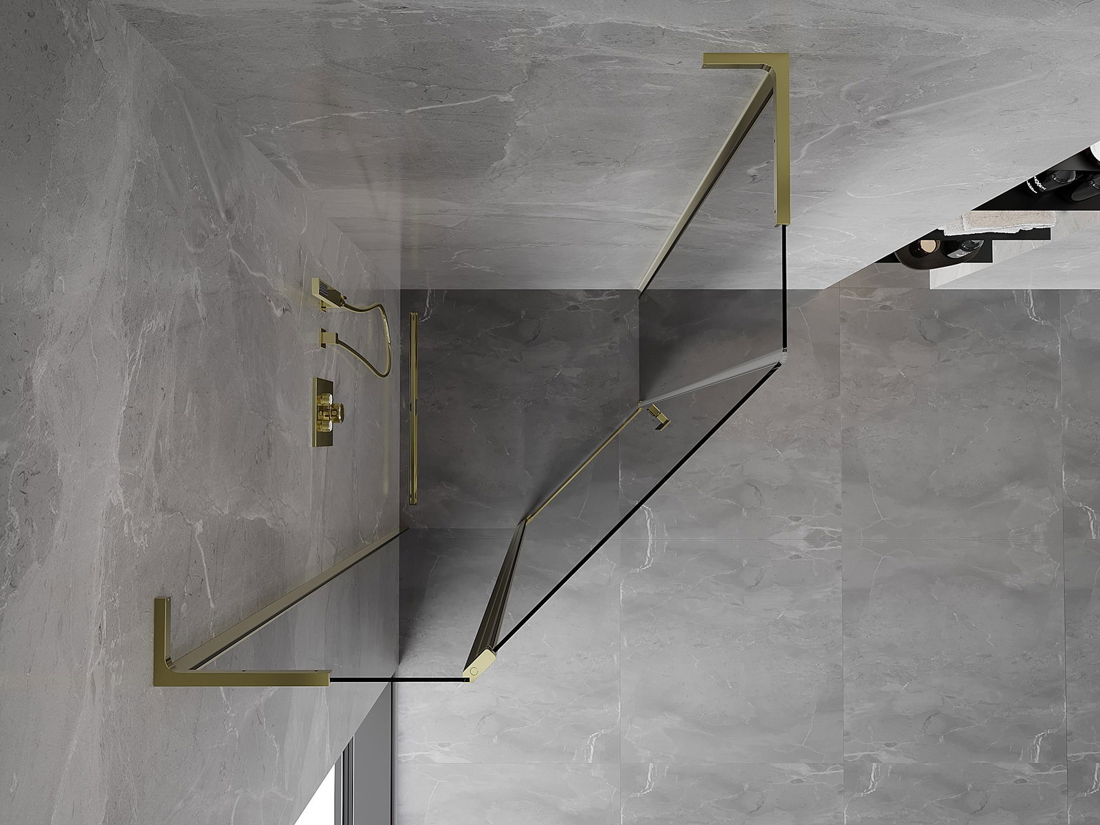 Mexen Mist L cabină de duș pentagonală cu balamale 90 x 90 cm, transparentă, aurie - 8A8L-090-090-50-00