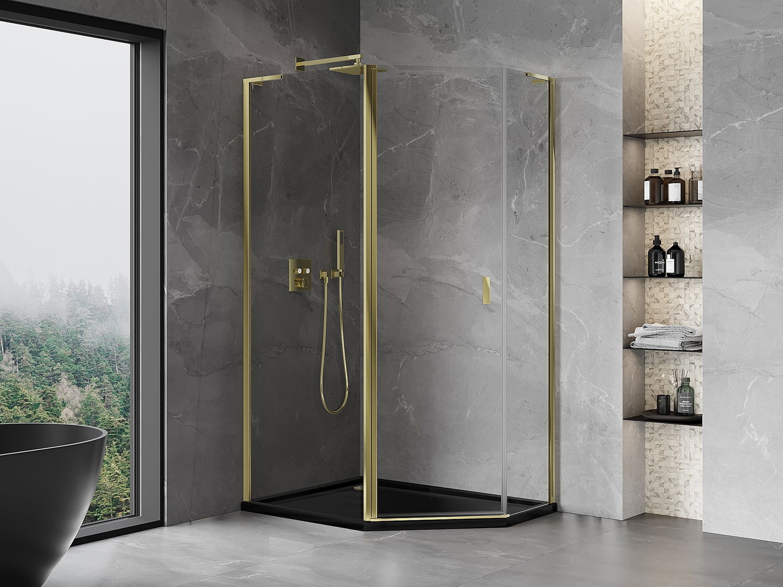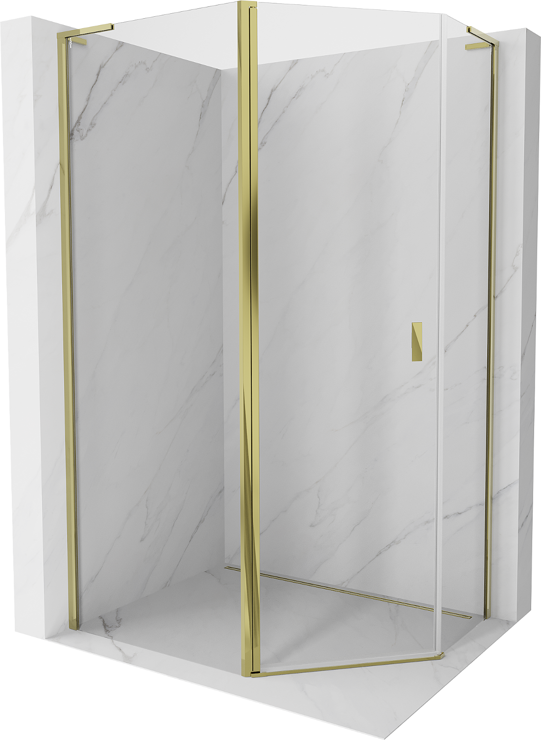 Mexen Mist L cabină de duș pentagonală asimetrică batantă 100 x 90 cm, transparent, auriu - 8A8L-100-090-50-00