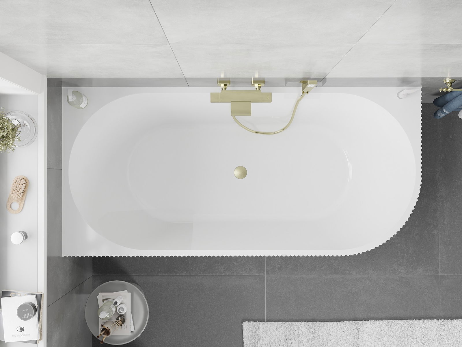 Mexen Silo cadă freestanding colțară stânga cu textură 150 x 75 cm, albă/neagră, preaplin auriu periat - 52891507575L-55