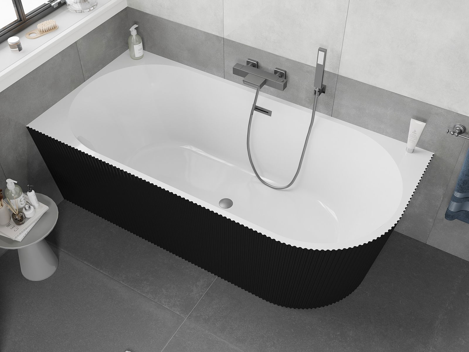 Mexen Silo cadă de sine stătătoare colțară stânga cu textură 150 x 75 cm, alb/negru, preaplin gri armă periat - 52891507575L-66