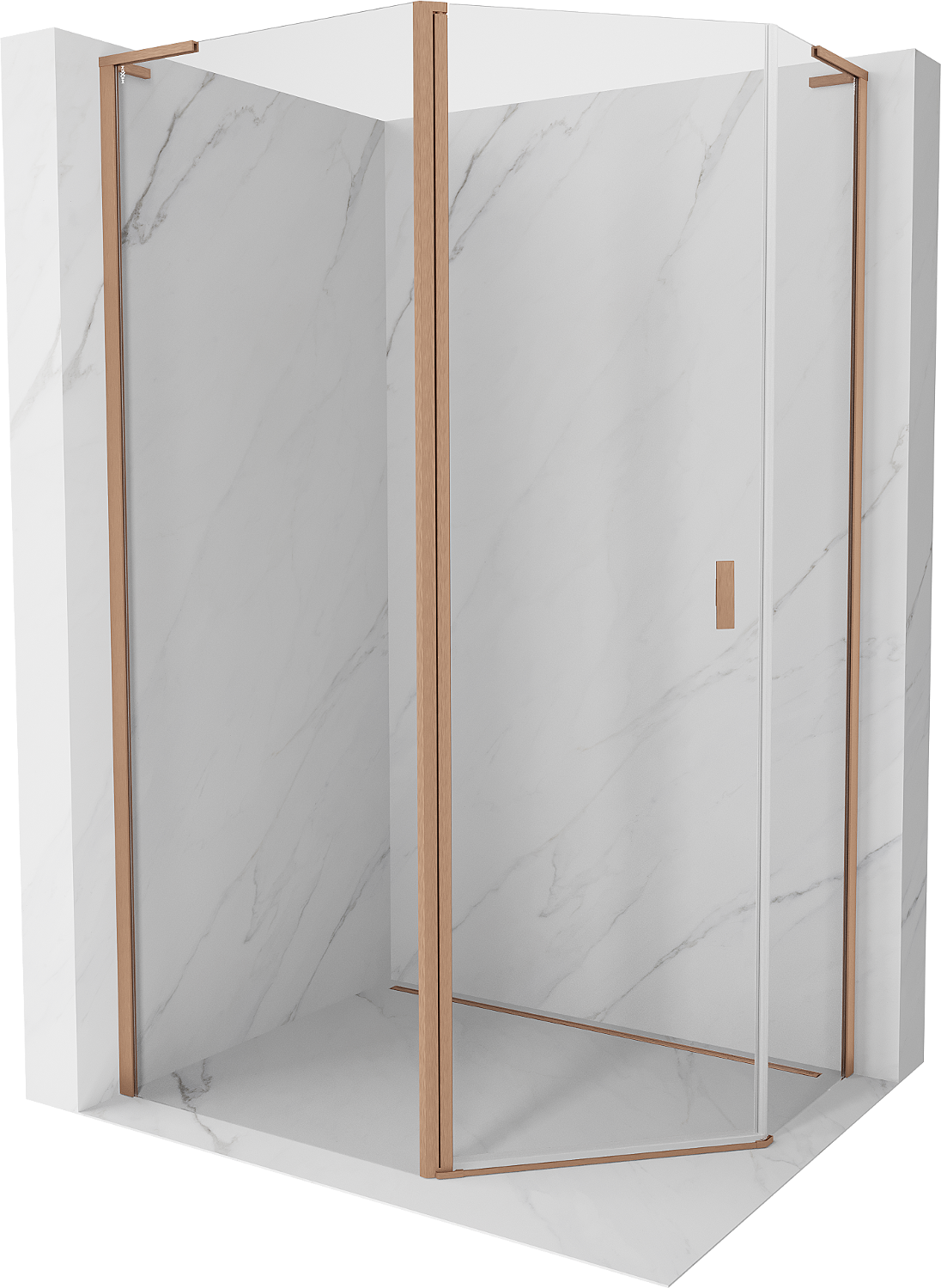 Mexen Mist L cabină de duș pentagonală asimetrică cu deschidere 100x90 cm, transparent, cupru periat - 8A8L-100-090-65-00