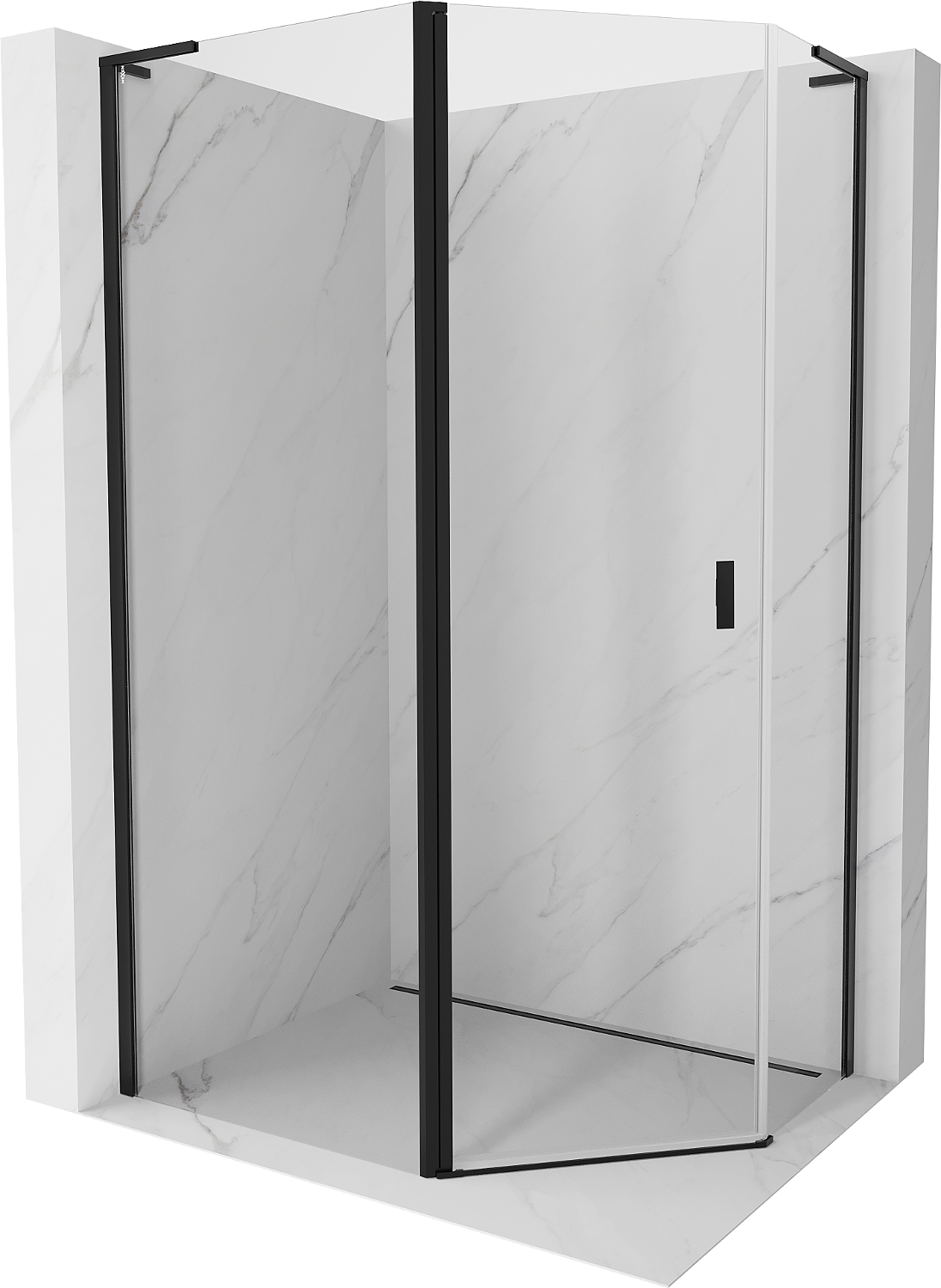 Mexen Mist L cabină de duș pentagonală asimetrică cu uși pivotante 100 x 80 cm, transparentă, neagră - 8A8L-100-080-70-00