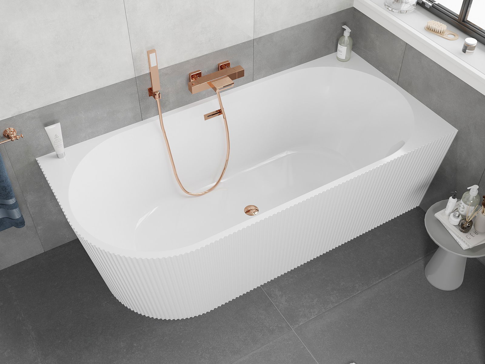Mexen Silo cadă independentă colț dreapta cu striații 150 x 75 cm, albă, preaplin aur roz - 52891507500P-60