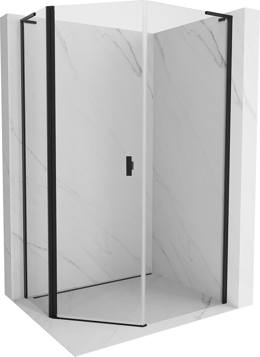 Mexen Mist L cabina de duș pentagonală asimetrică pivotantă 80 x 90 cm, transparentă, neagră - 8A8L-080-090-70-00