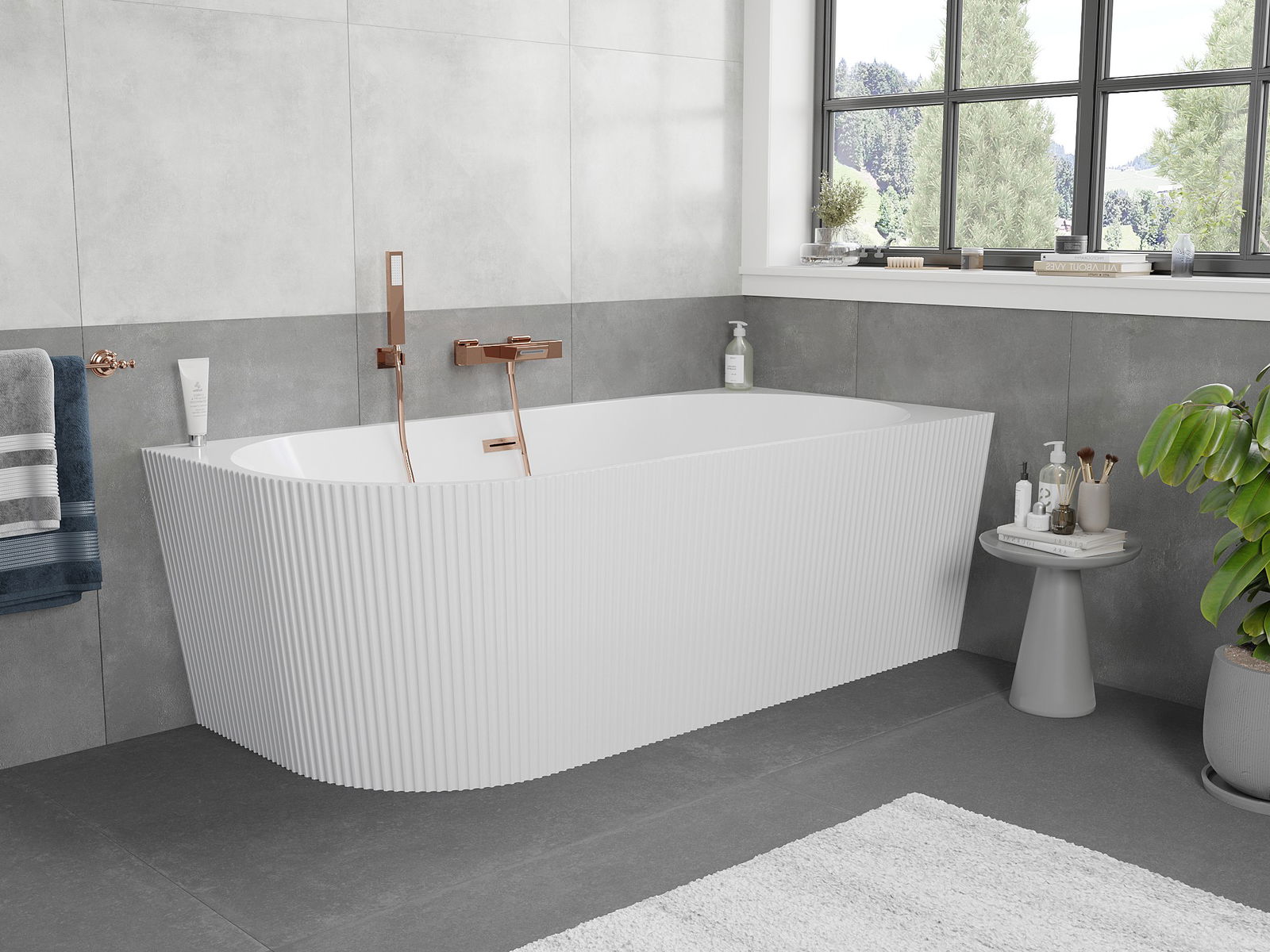 Mexen Silo cadă de colț dreaptă freestanding 150 x 75 cm, albă, preaplin cupru periat - 52891507500P-65