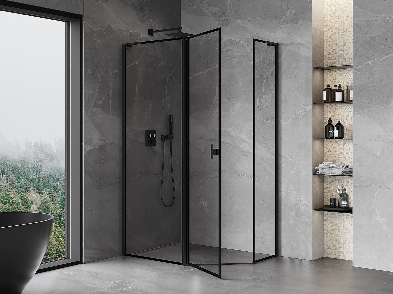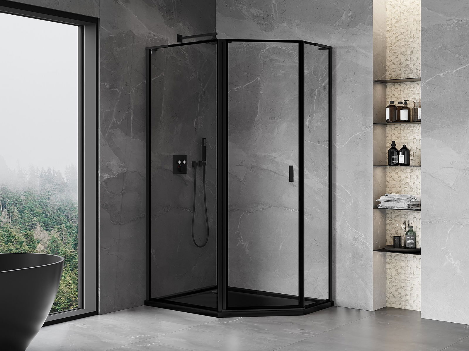 Mexen Mist L cabină de duș pentagonală asimetrică cu deschidere stânga 100 x 80 cm, ramă neagră, neagră - 8A8L-100-080-70-70-L