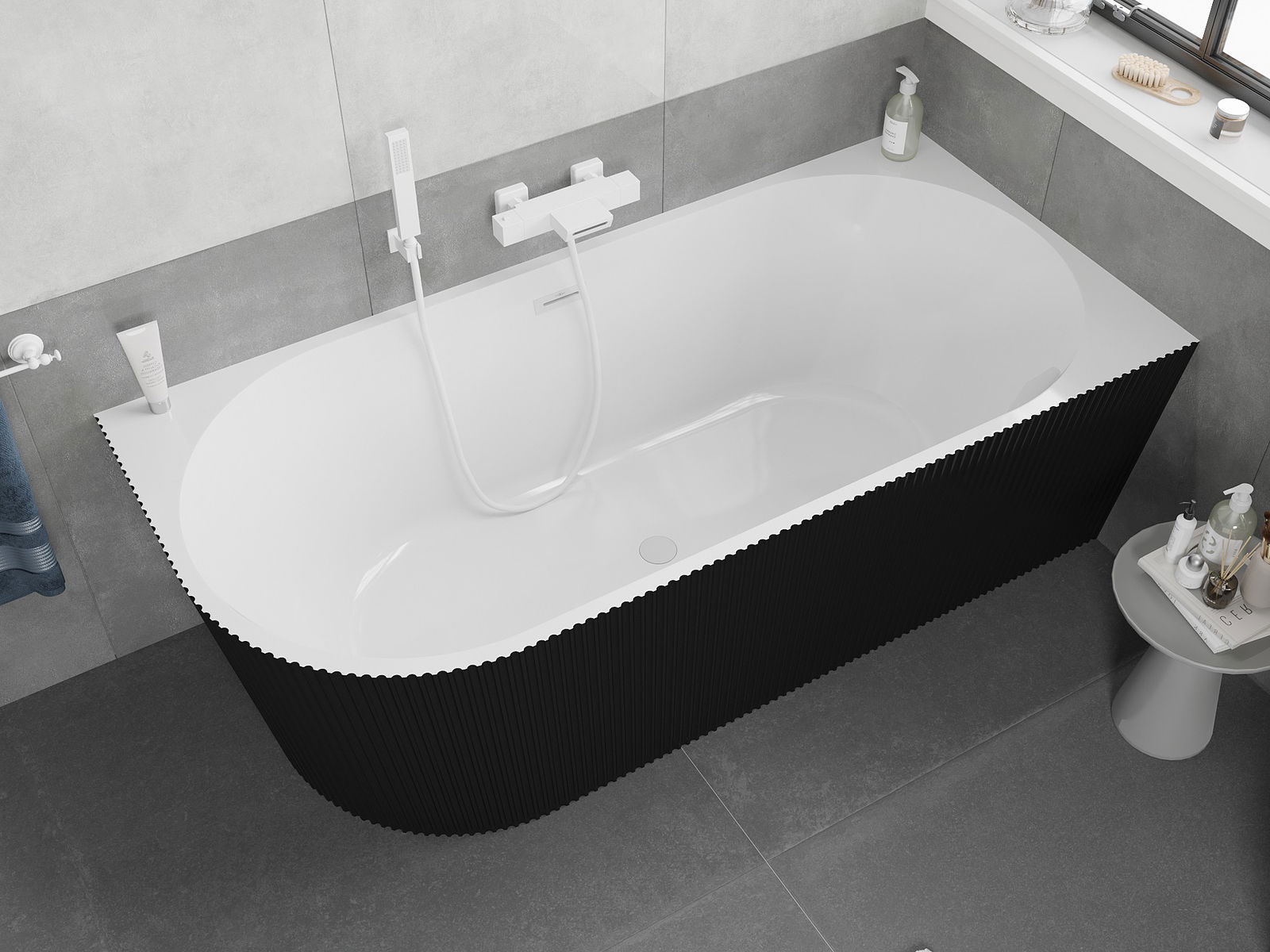 Mexen Silo cadă de colț independentă dreaptă cu striații 150 x 75 cm, alb/negru, preaplin alb - 52891507575P-20