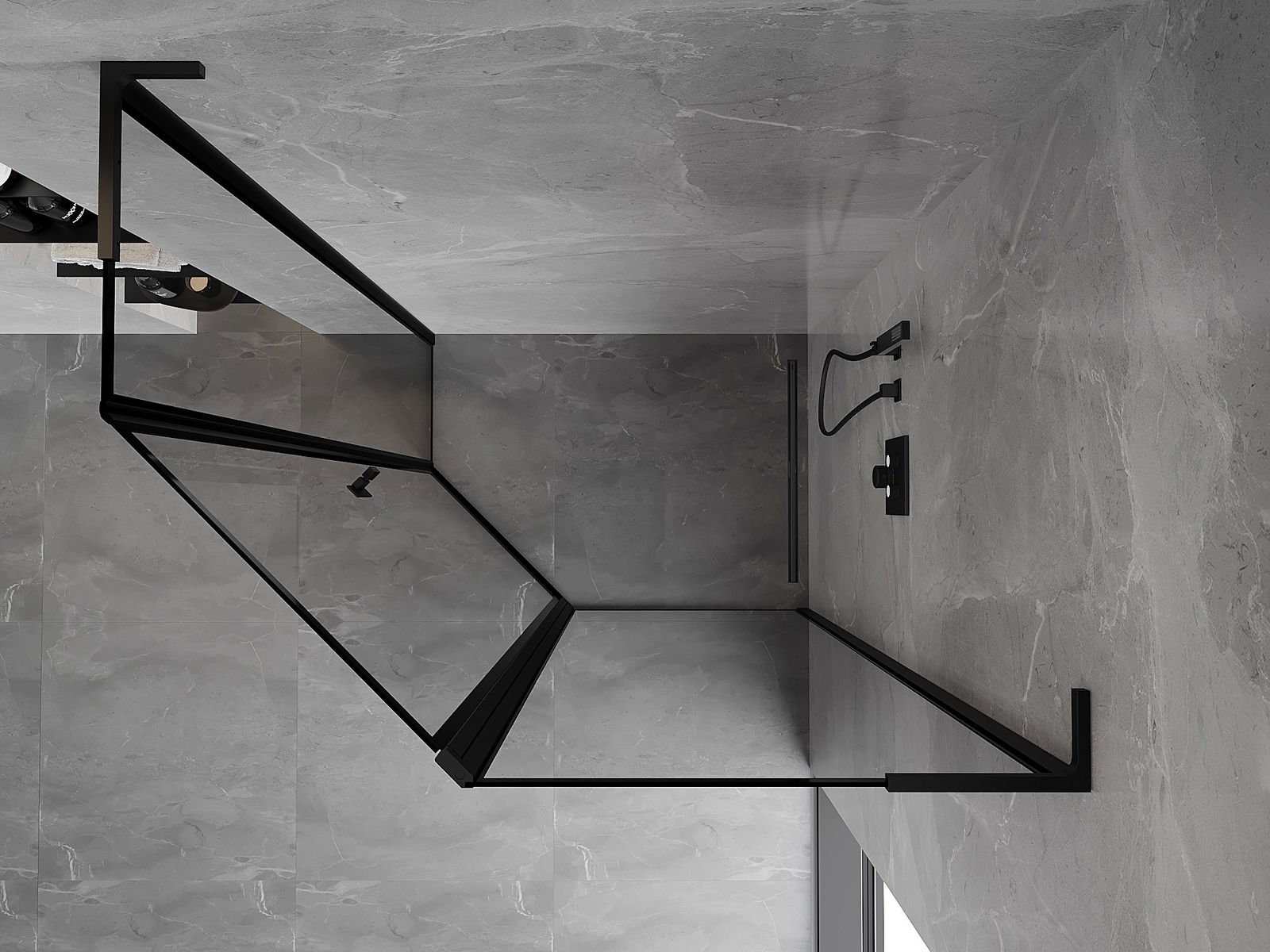 Mexen Mist L cabină de duș pentagonală asimetrică batantă dreapta 100 x 90 cm, ramă neagră, neagră - 8A8L-100-090-70-70-P