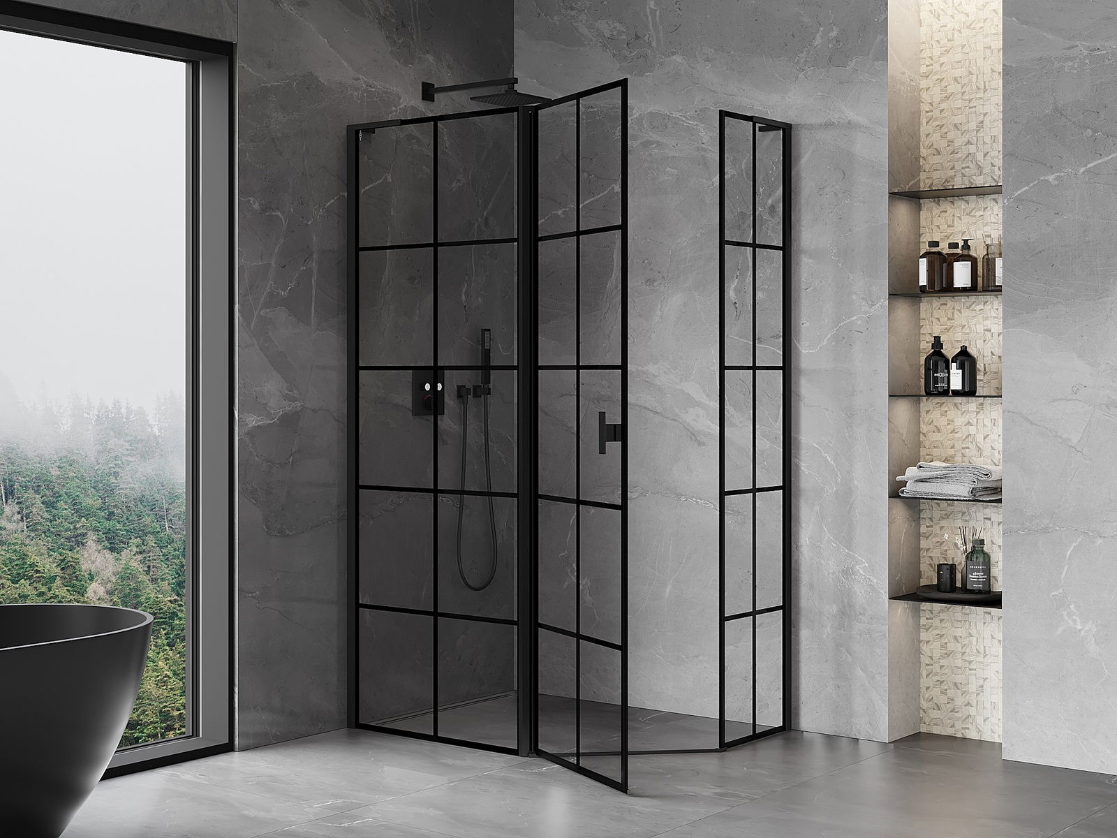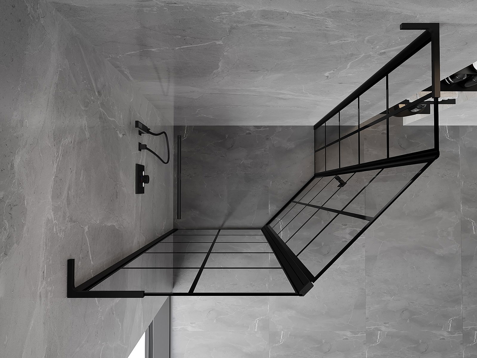 Mexen Mist L cabină de duș pentagonală asimetrică cu deschidere spre stânga 90 x 80 cm, grilaj negru, neagră