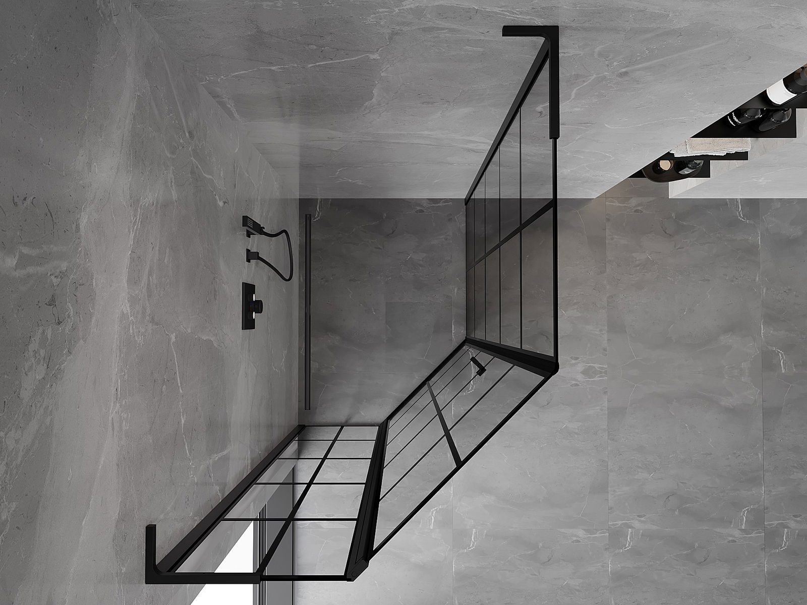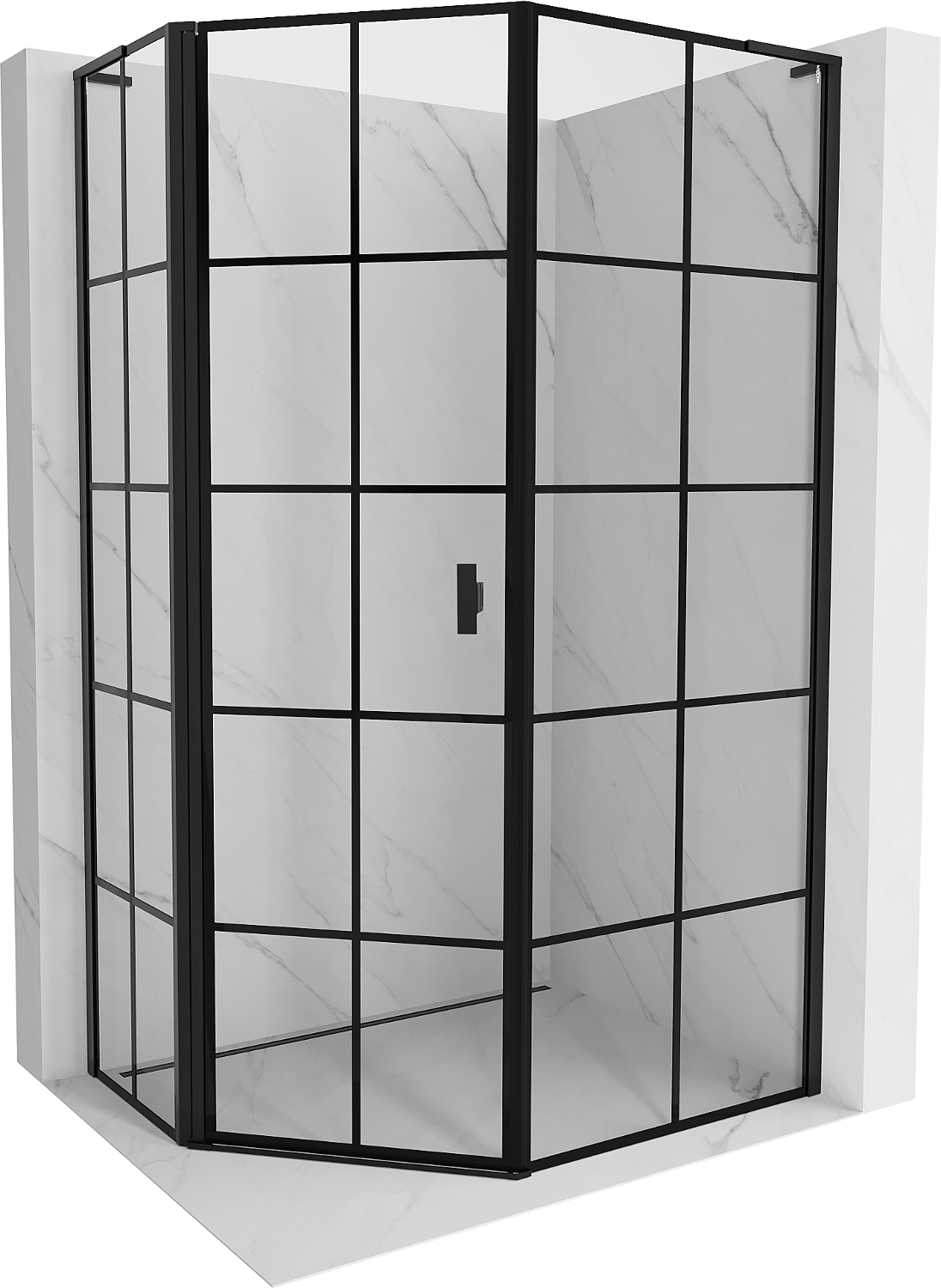 Mexen Mist L cabină de duș pentagonală asimetrică rabatabilă stânga 80 x 90 cm, grilaj negru, negru - 8A8L-080-090-70-77-L