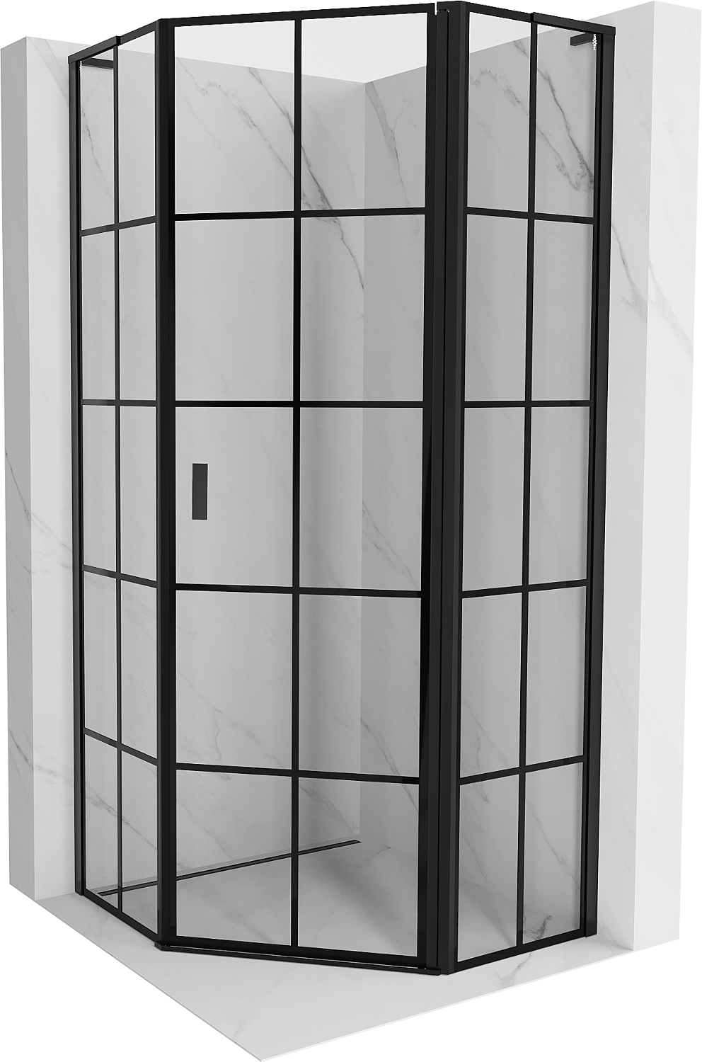 Mexen Mist L cabină de duș pentagonală cu deschidere dreapta 80 x 80 cm, grilaj negru, negru - 8A8L-080-080-70-77-P