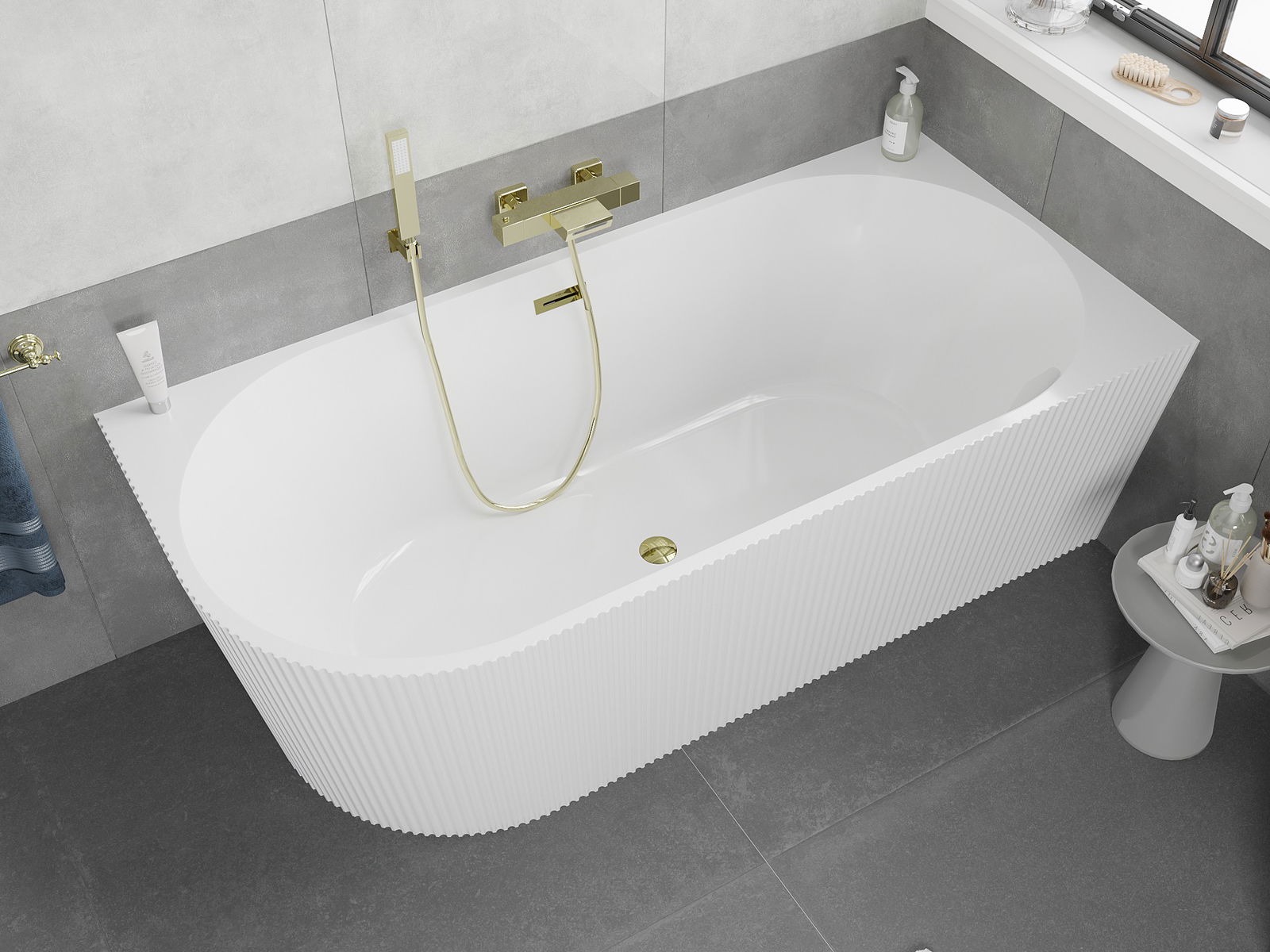 Mexen Silo cadă de sine stătătoare colț dreapta cu striații 170 x 80 cm, albă, preaplin auriu - 52891708000P-50