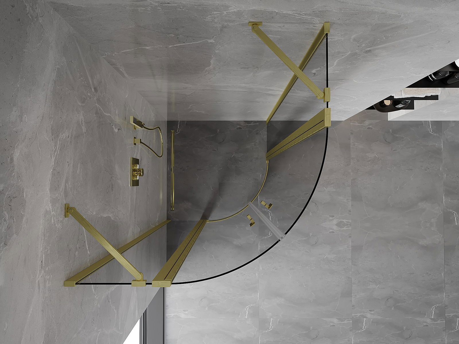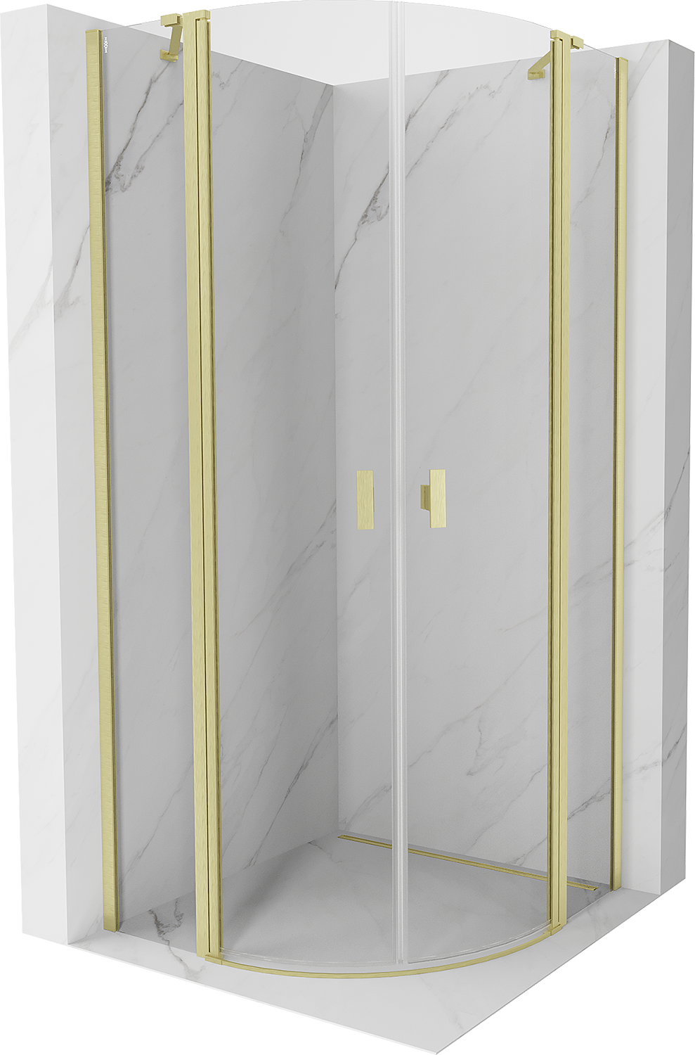Mexen Mist cabină de duș semicirculară pivotantă 80 x 80 cm, transparentă, aurie periată - 8A32-080-080-55-00