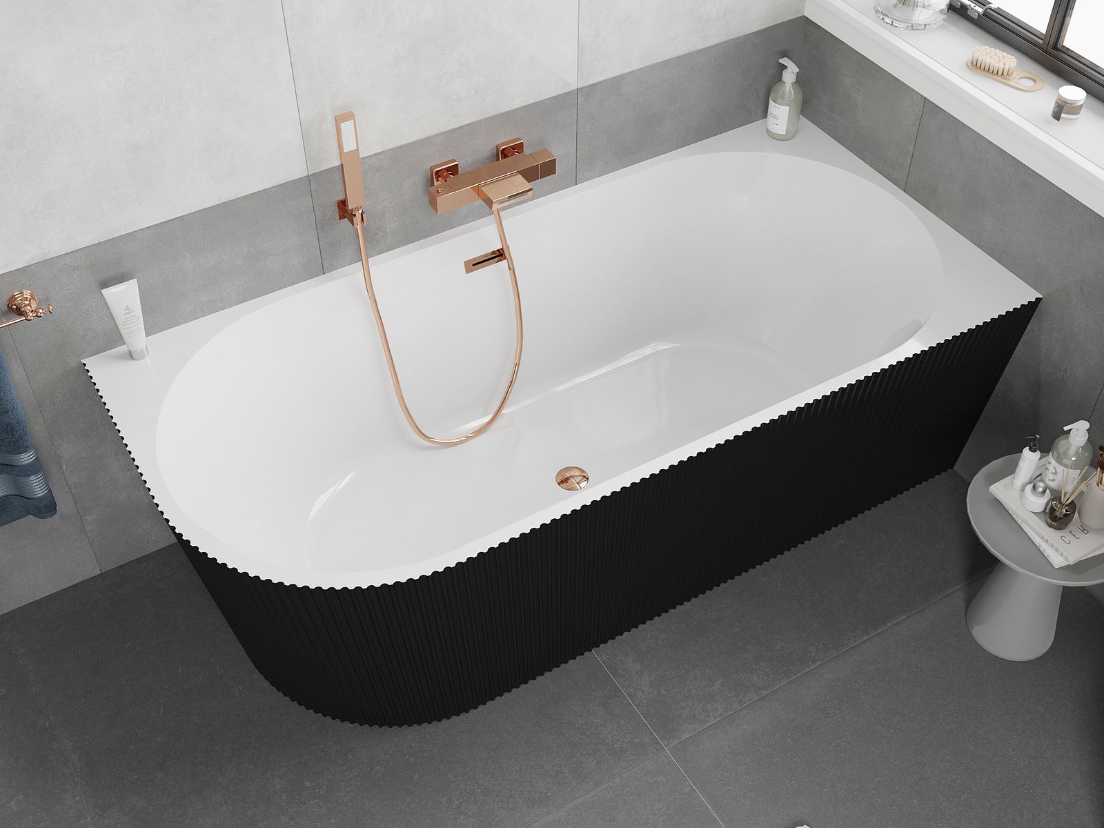 Mexen Silo cadă de colț dreaptă independentă cu șanțuri 170 x 80 cm, alb/negru, preaplin aur roz - 52891708075P-60