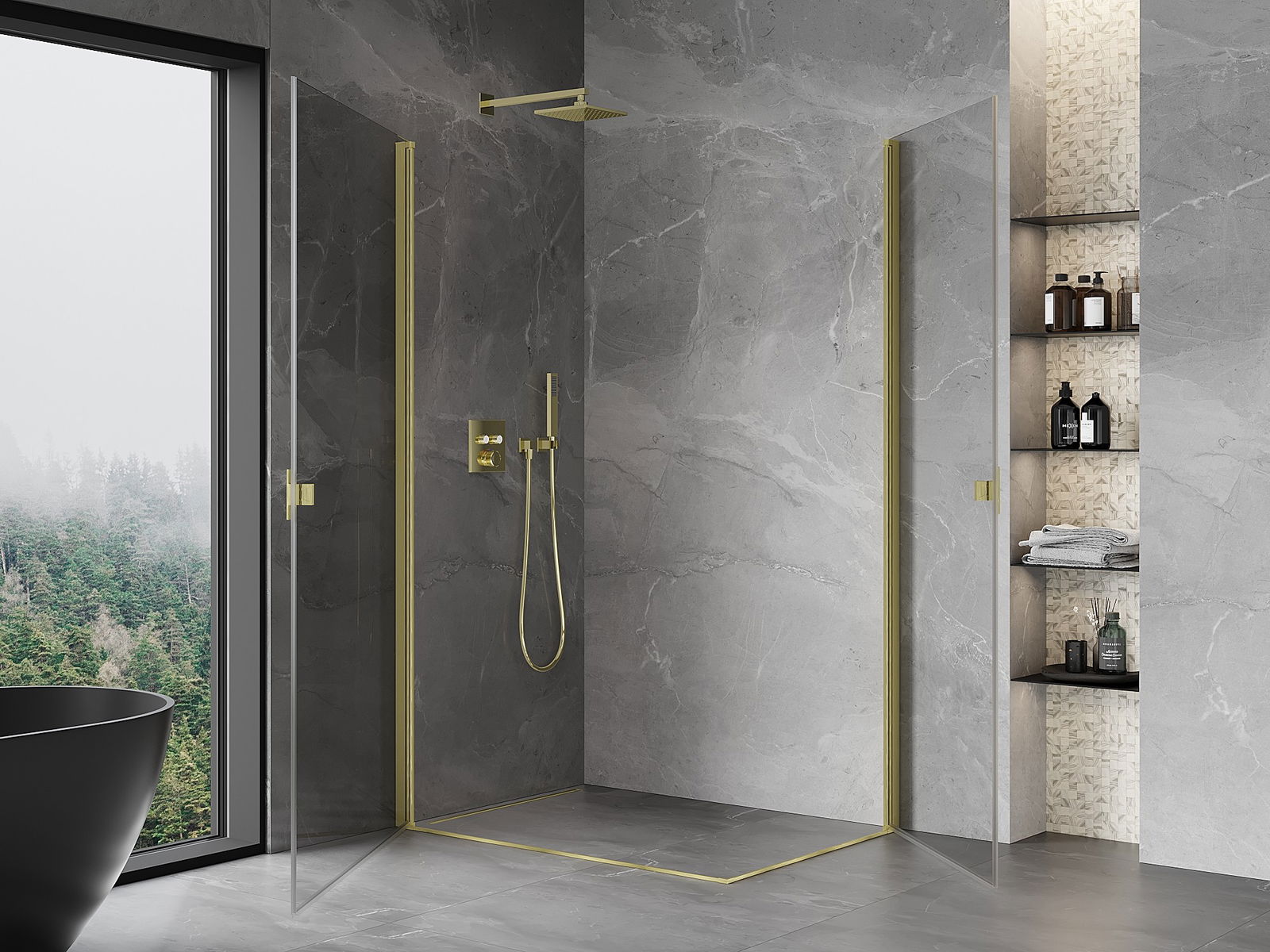 Mânerul practic și confortabil este realizat din metal durabil și rezistent. Forma modernă, combinată cu un finisaj asortat cu culoarea profilelor, conferă un aspect modern și elegant întregului, subliniind estetica fiecărei băi.